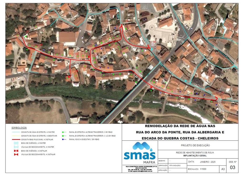 No âmbito da remodelação da rede de água, os Serviços Municipalizados de Água e Saneamento do Município de Mafra (SMAS de Mafra) informam que está a decorrer uma obra na Rua do Arco da Ponte, na Rua da Albergaria e na Escada do Quebra Costas, sitas na localidade de Cheleiros (UF Igreja Nova e Cheleiros).