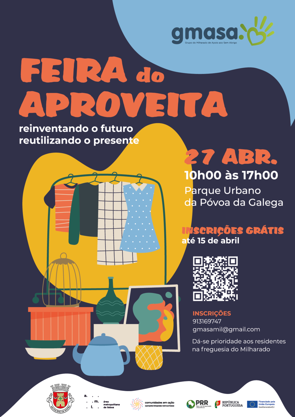 Reinventando o futuro, reutilizando o presente. A Feira do Aproveita, um certame destinado à troca ou venda de artigos usados, está de regresso ao Parque Urbano da Póvoa da Galega! Até ao dia 15 de abril, estão abertas as inscrições para atribuição de 20 bancas, através do formulário disponível em: https://www.cm-mafra.pt/pages/2901 (será dada prioridade a residentes na Freguesia do Milharado)