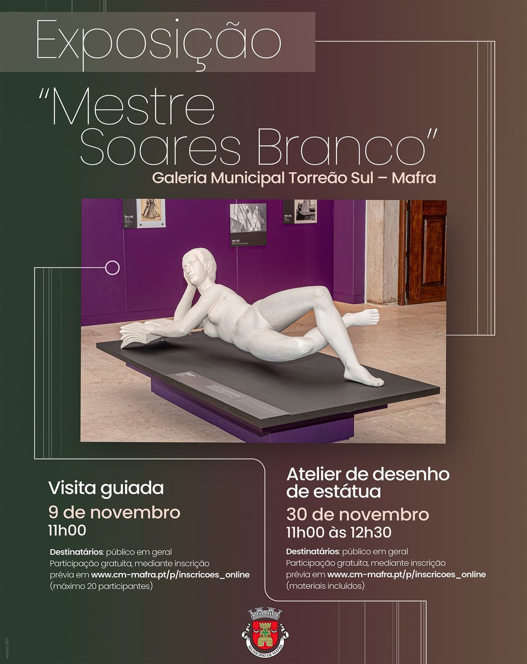 No dia 9 de novembro, às 11h00, participe na visita guiada à exposição que reúne as mais importantes obras e referências ao Mestre Soares Branco, patente na Galeria Municipal Torreão Sul, em Mafra. Visite a mostra e descubra muitas das peças que marcaram as artes plásticas de Portugal, no século XX.