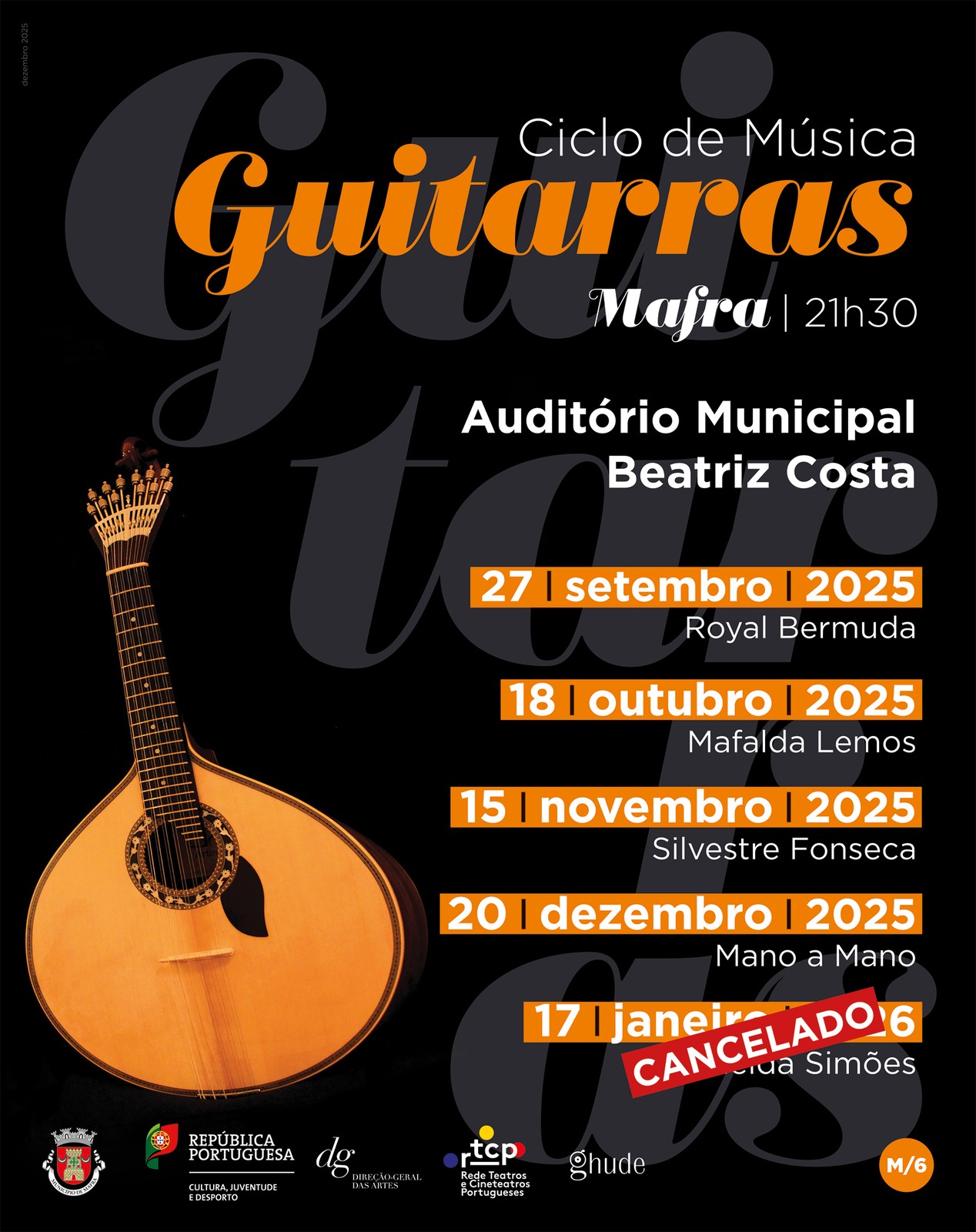 O Ciclo de Música “Guitarras” integra a candidatura à Rede de Teatros e Cineteatros Portugueses (RTCP), contemplada na ação "Programação Cultural RTCP".