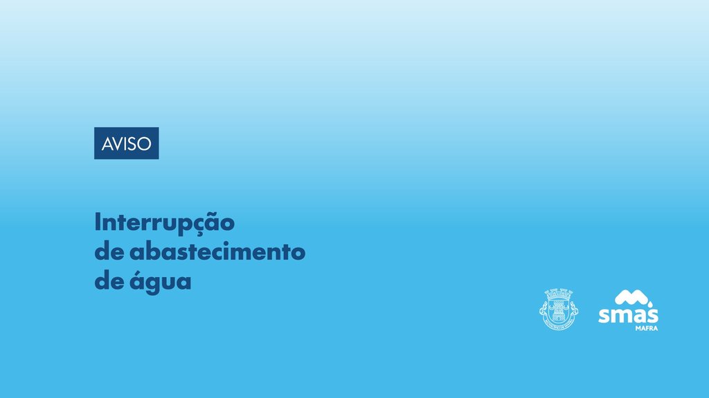 Os Serviços Municipalizados de Água e Saneamento de Mafra (SMAS de Mafra) informam que, devido a intervenções na rede, irá ocorrer uma interrupção de abastecimento, entre as 09h00 e as 13h00, no dia 2 de fevereiro, na Venda do Valador (Malveira).