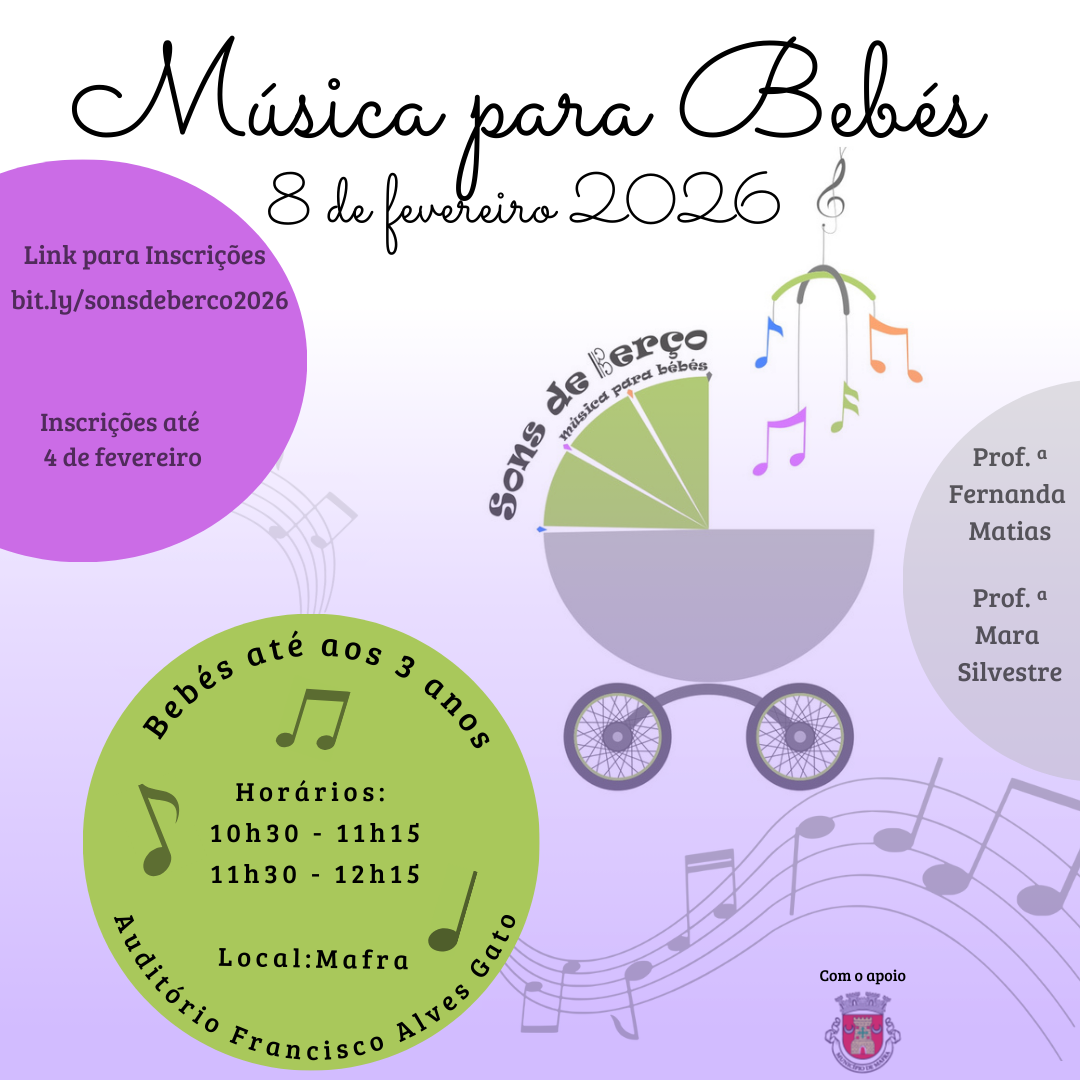 Música, rimas infantis e jogos rítmicos. O projeto “Música para Bebés” regressa à Casa da Música Francisco Alves Gato (Mafra), para mais uma manhã de atividades para bebés e crianças até aos 3 anos (acompanhadas de um adulto). A iniciativa realiza-se no dia 8 de fevereiro, às 10h30 e às 11h30.