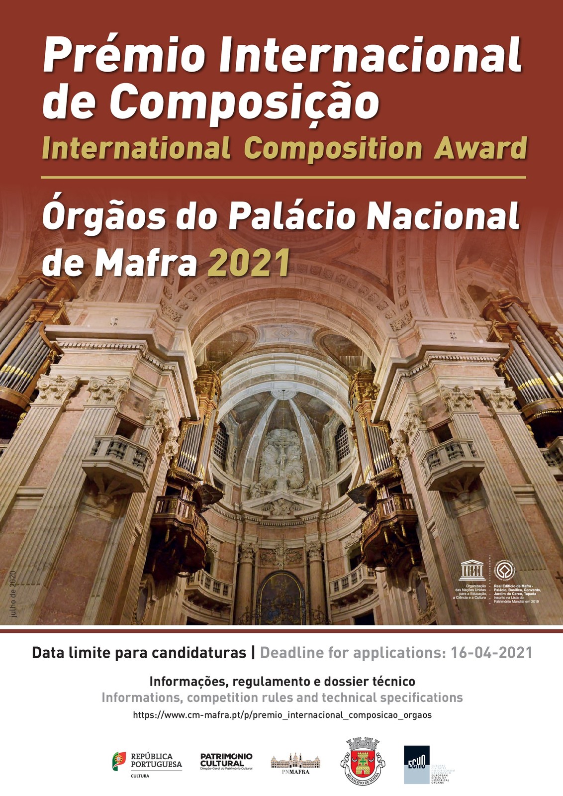 Tendo como finalidade criar novo repertório para o magnífico conjunto instrumental, recentemente classificado como Património Mundial pela UNESCO, o Ministério da Cultura e o Município de Mafra promovem o “Prémio Internacional de Composição – Órgãos do Palácio Nacional de Mafra”. As candidaturas estão abertas até 16 de abril de 2021.