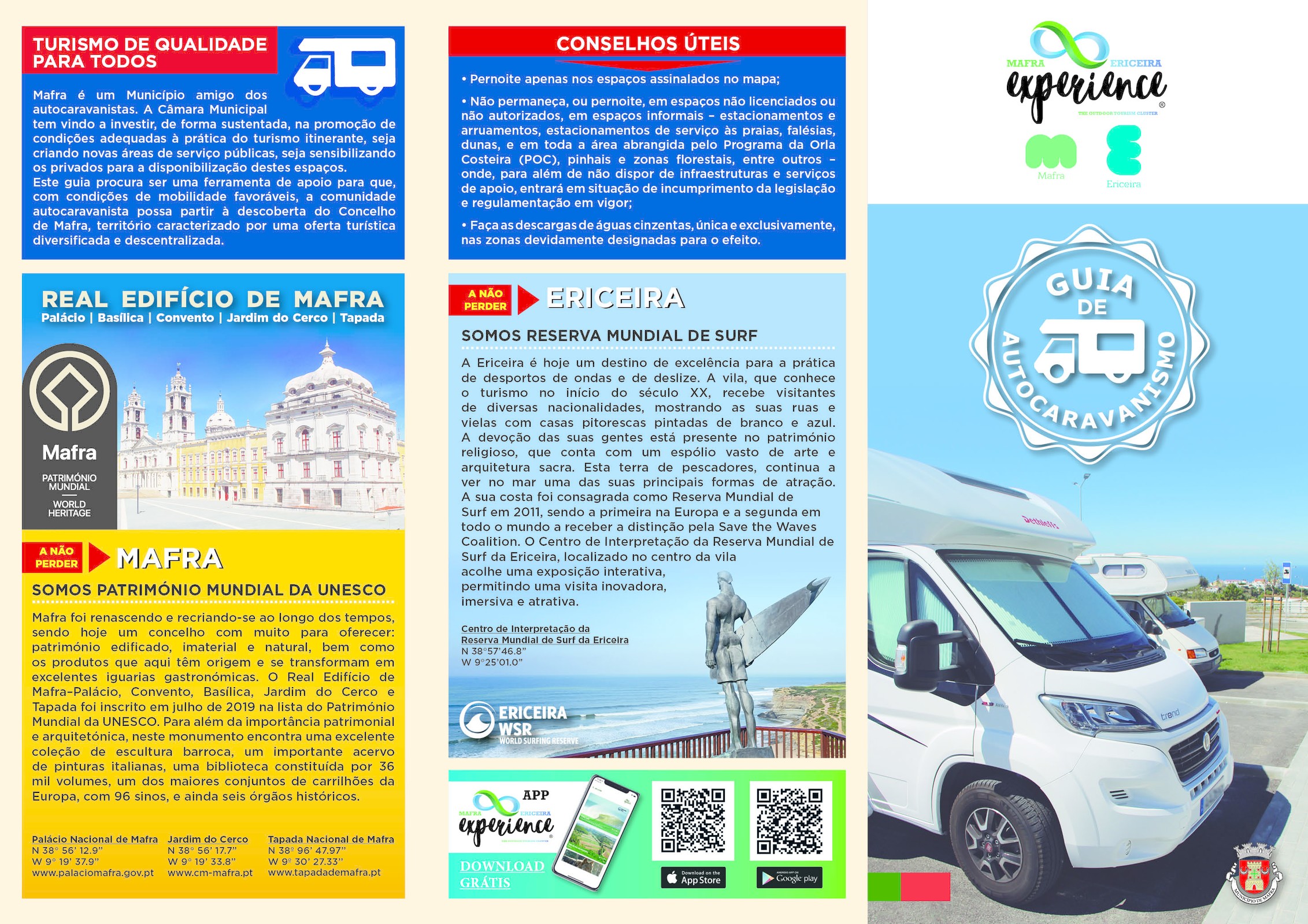 No Dia Mundial do Turismo, é apresentado o “Guia de Autocaravanismo”, em língua portuguesa e inglesa, que procura ser uma ferramenta de apoio para que, com condições de mobilidade favoráveis, a comunidade autocaravanista possa partir à descoberta do Concelho de Mafra, território caracterizado por uma oferta turística diversificada e descentralizada.