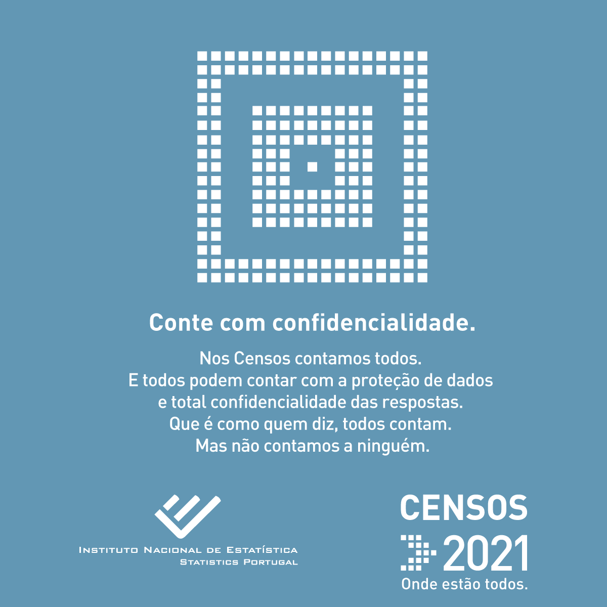Já está a decorrer a maior operação estatística a nível nacional. Os censos 2021 vão contar todos os residentes e todos os edifícios destinados à habitação dando a conhecer o retrato atual do nosso País. A colaboração de todos é fundamental. Responda online, preferencialmente, até dia 3 de maio. A resposta é obrigatória e confidencial. Censos 2021. Contamos todos. Contamos com todos!