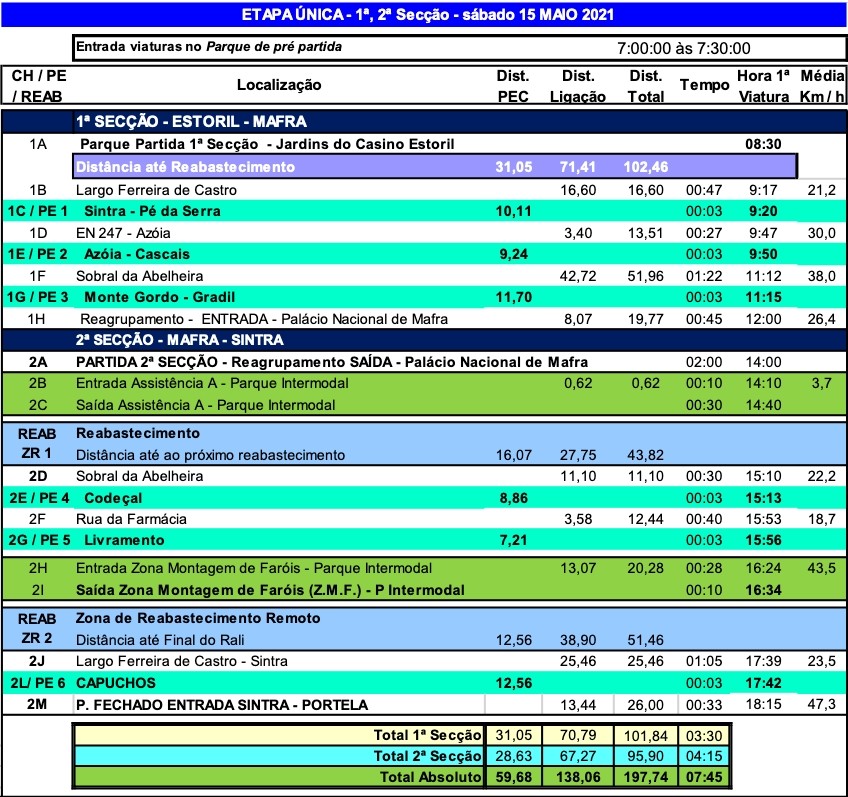 – Corte de trânsito da Estrada do Rio Sobral – Codeçal – Chanca – Monte Gordo – Portela do Gradil – EN9-2 até ao Portão da Tapada Nacional, das 10h15 às 12h30;