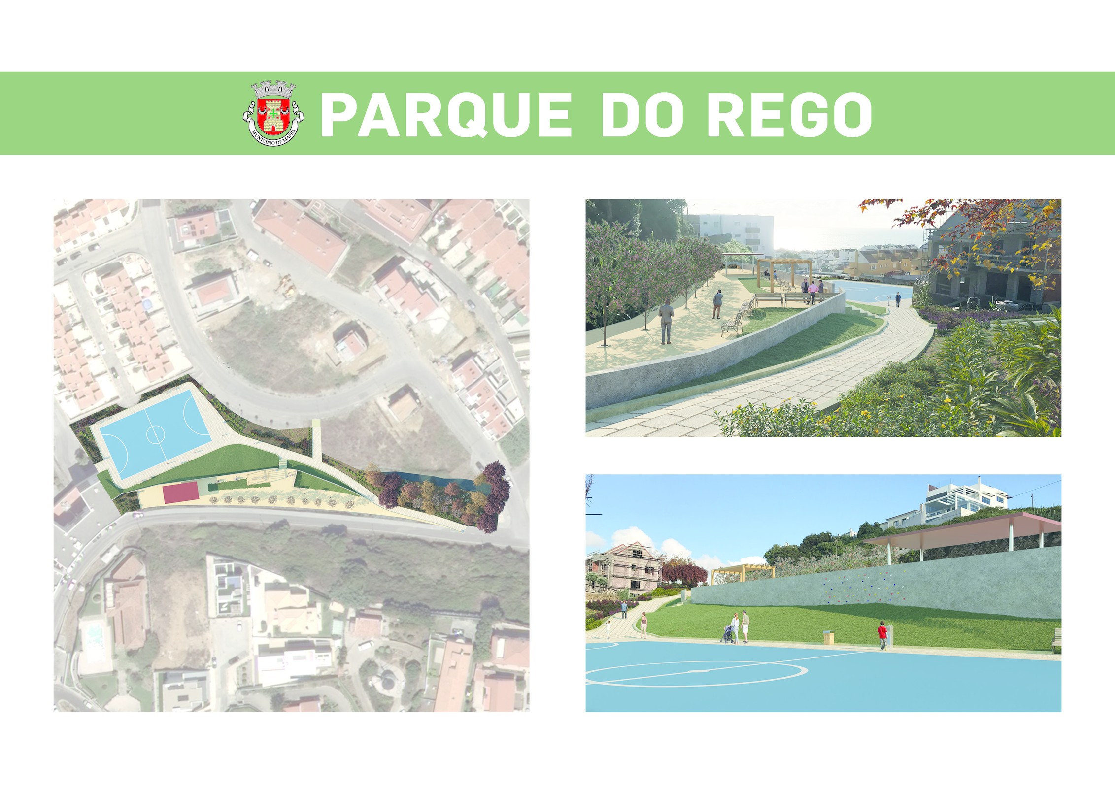 O projeto contempla a execução de um campo de futebol de 5 e espaço para desportos de aventura com parede de escalada e equipamento para slide. Está igualmente prevista a plantação no parque de 25 árvores e 822 arbustos diversos.