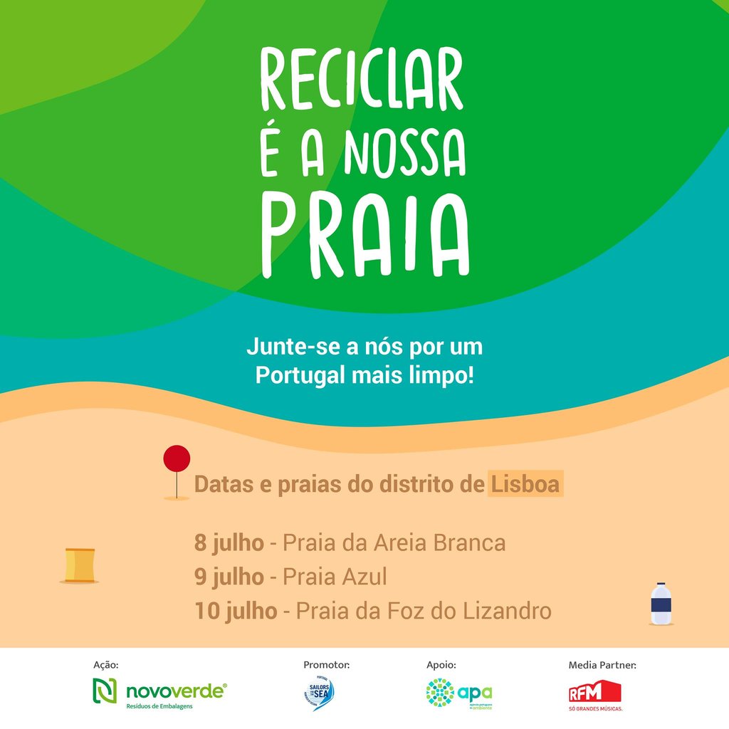 É urgente reverter os efeitos da poluição causada por plásticos ou outro tipo de embalagens nos mares, e por isso, é absolutamente necessário não deixar lixo nas praias. A ação “Reciclar é a Nossa Praia” foi criada neste sentido, de alertar e sensibilizar os cidadãos para a importância de não deixar lixo na praia e de reciclar todas as embalagens que sejam para descartar. A iniciativa, organizada pela Novo Verde, com a colaboração do Município de Mafra, realiza-se na praia da Foz do Lizandro, no dia 10 de julho, das 10h00 às 17h00. É importante salvar os oceanos e o nosso planeta. Junte-se a nós por um Portugal mais limpo!