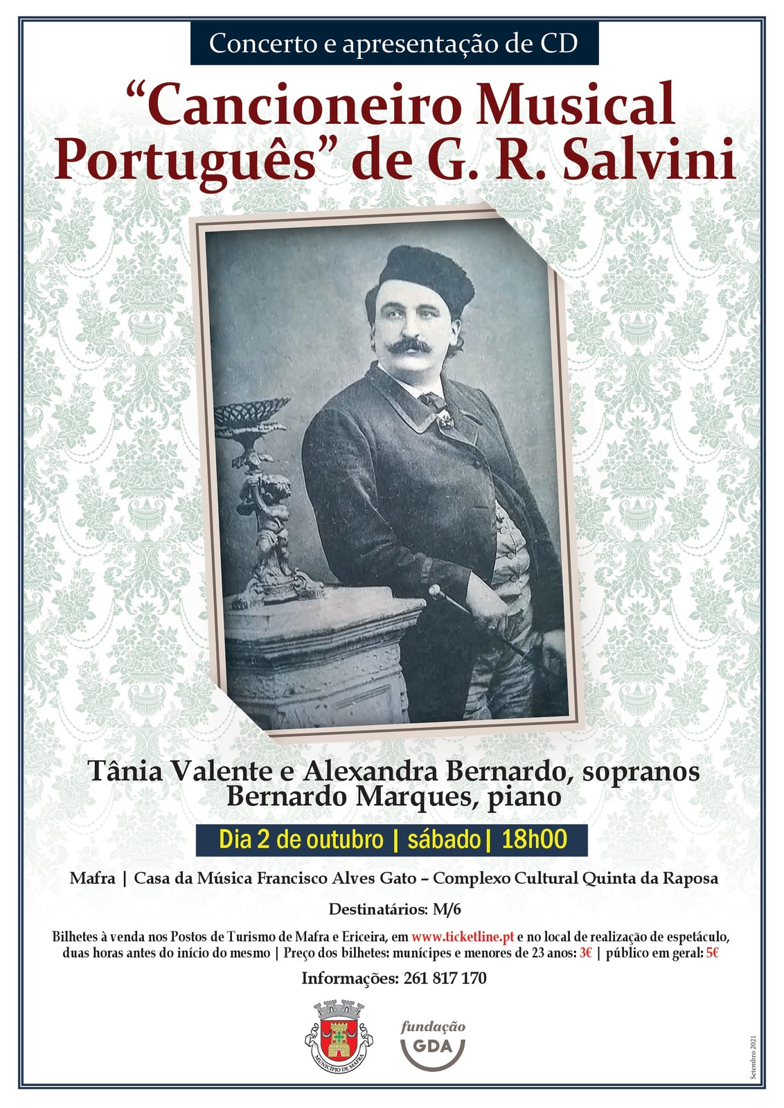 Gustavo Romanoff Salvini é considerado um dos mais importantes compositores da música portuguesa do século XIX. A sua obra "Cancioneiro Musical Português - 40 melodias na língua portuguesa com piano - letras dos grandes escritores portugueses”, que vai ser apresentada em concerto no próximo dia 2 de outubro, às 18h00, na Casa da Música Francisco Alves Gato, em Mafra, foi precursora de outros grandes compositores como José Vianna da Motta e Alfredo Keil.