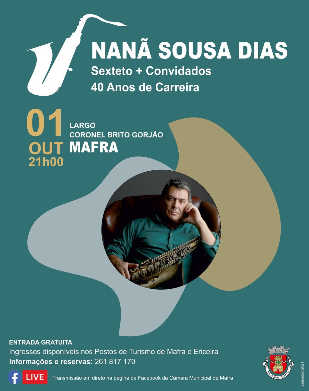 O músico Nanã Sousa Dias apresenta-se em formato de sexteto para o concerto comemorativo dos seus 40 anos de carreira, que se realiza no próximo dia 1 de outubro, às 21h00, no Largo Coronel Brito Gorjão, em Mafra. A entrada é gratuita, mediante levantamento de ingressos nos Postos de Turismo de Mafra e Ericeira, sendo obrigatório o uso de máscara.