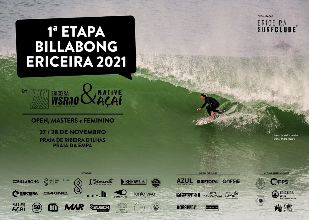 Realiza-se, nos dias 27 e 28 de novembro, na mítica praia de Ribeira d’Ilhas, na Ericeira, o BILLABONG ERICEIRA 2021, by ERICEIRA WSR +10 e NATIVE AÇAÍ. A competição decorre nas icónicas ondas da Reserva Mundial de Surf da Ericeira, que muito têm celebrizado este circuito, integrando as categorias Open, Feminino e Masters.