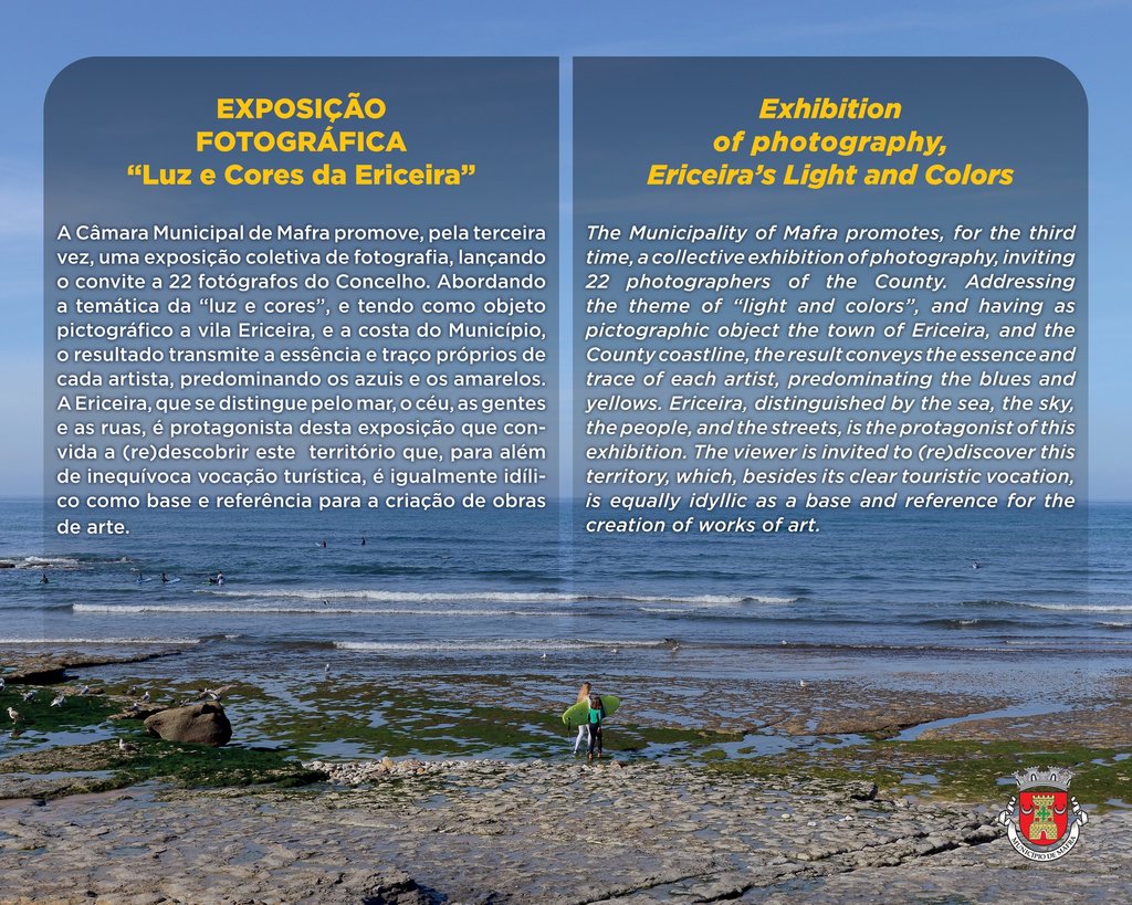 "Luz e Cores da Ericeira" protagonizam a terceira exposição de fotografia de rua, que está patente a partir das 17 horas do dia 11 de dezembro na Rua Dr. Eduardo Burnay, na Ericeira, colocando em evidência o talento de 22 fotógrafos locais.