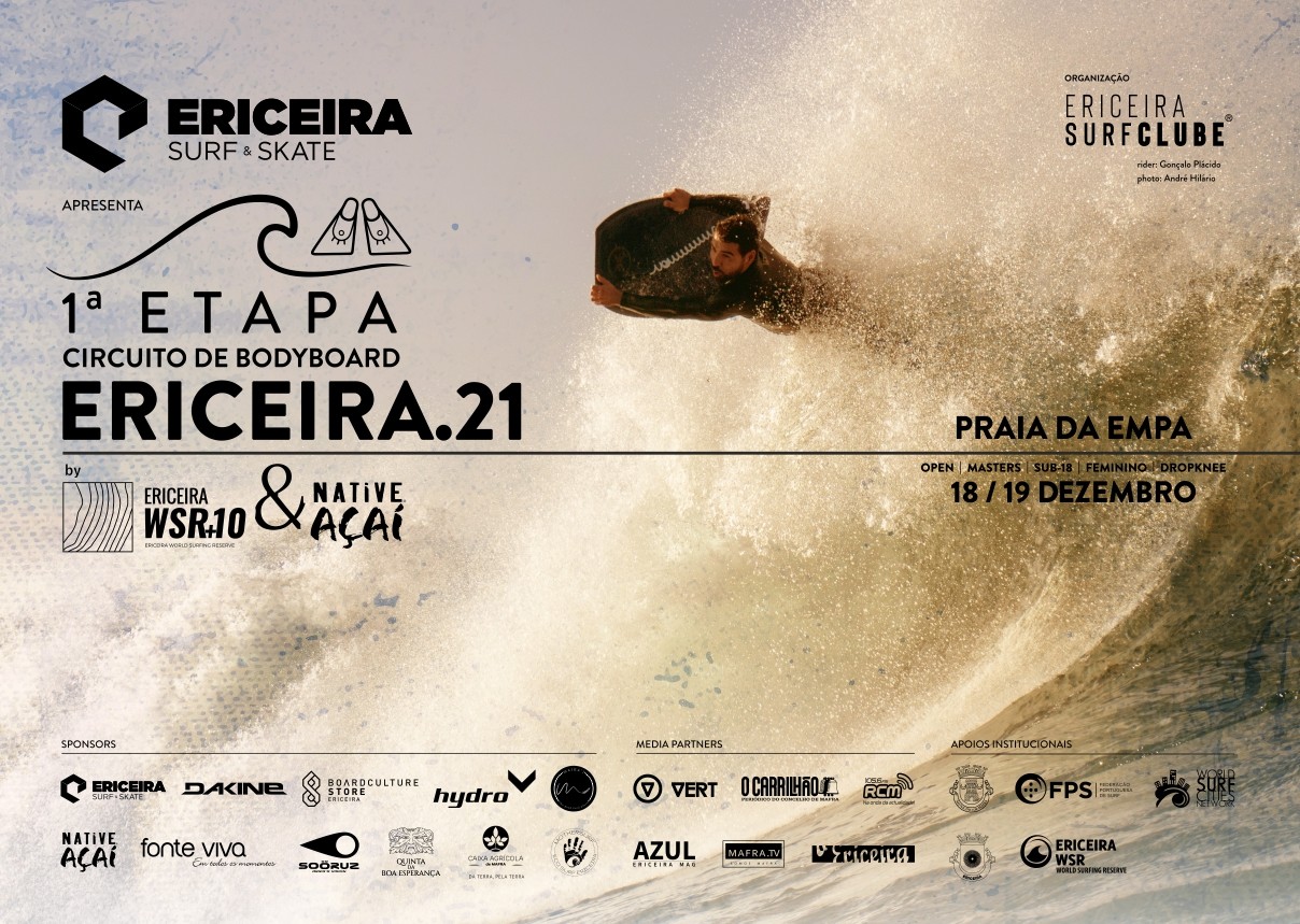 Encontram-se a decorrer, até ao fim do dia 16 de dezembro, as inscrições para a primeira etapa do Circuito de Bodyboard da Ericeira 2021 que se realiza na Praia da Empa, onde os picos das ondas Pedra Branca, Reef ou Backdoor irão proporcionar, certamente, um grande espetáculo de Bodyboard. Consoante a ondulação e as condições atmosféricas, a prova realiza-se nos dias 18 ou 19 de dezembro. A competição decorre nas categorias: Open, Feminino, Sub 18, Masters e Dropknee.