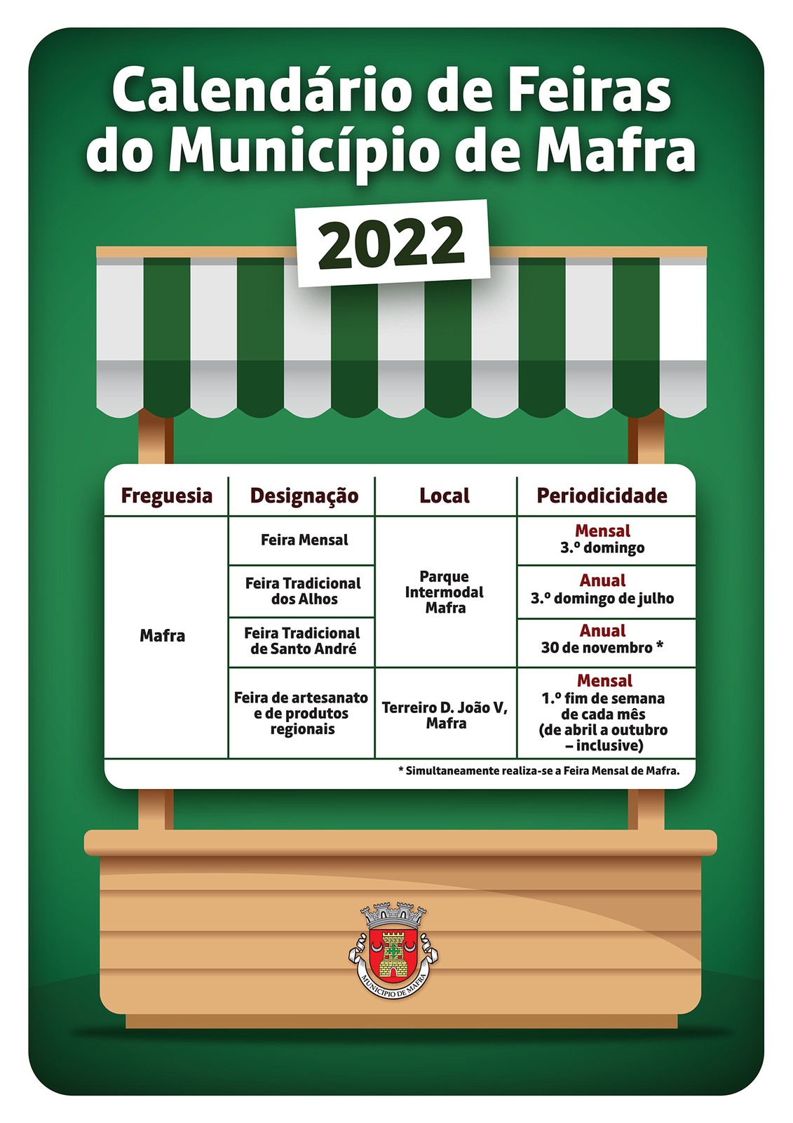 A Câmara Municipal divulga o calendário de feiras para o ano 2022. Contribuindo para a valorização das atividades económicas locais, as feiras permitem divulgar não só os produtos regionais, mas também a cultura popular do Concelho.