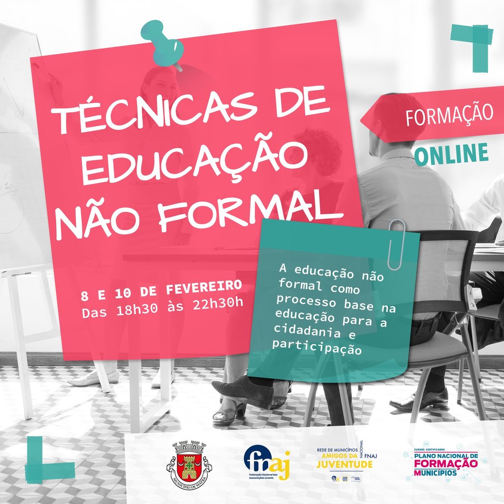 A Câmara Municipal de Mafra promove a formação “Técnicas de educação não formal”, no âmbito da iniciativa “Capacitar+ Juventude”, que se realiza, em formato online, nos dias 8 e 10 de fevereiro, entre as 18h30 e as 22h30, destinando-se a jovens dos 15 aos 30 anos. A iniciativa visa a formação e sensibilização de dirigentes associativos, associados e voluntários, sendo a participação gratuita, mediante inscrição, até dia 2 de fevereiro, em: https://www.cm-mafra.pt/pages/2062