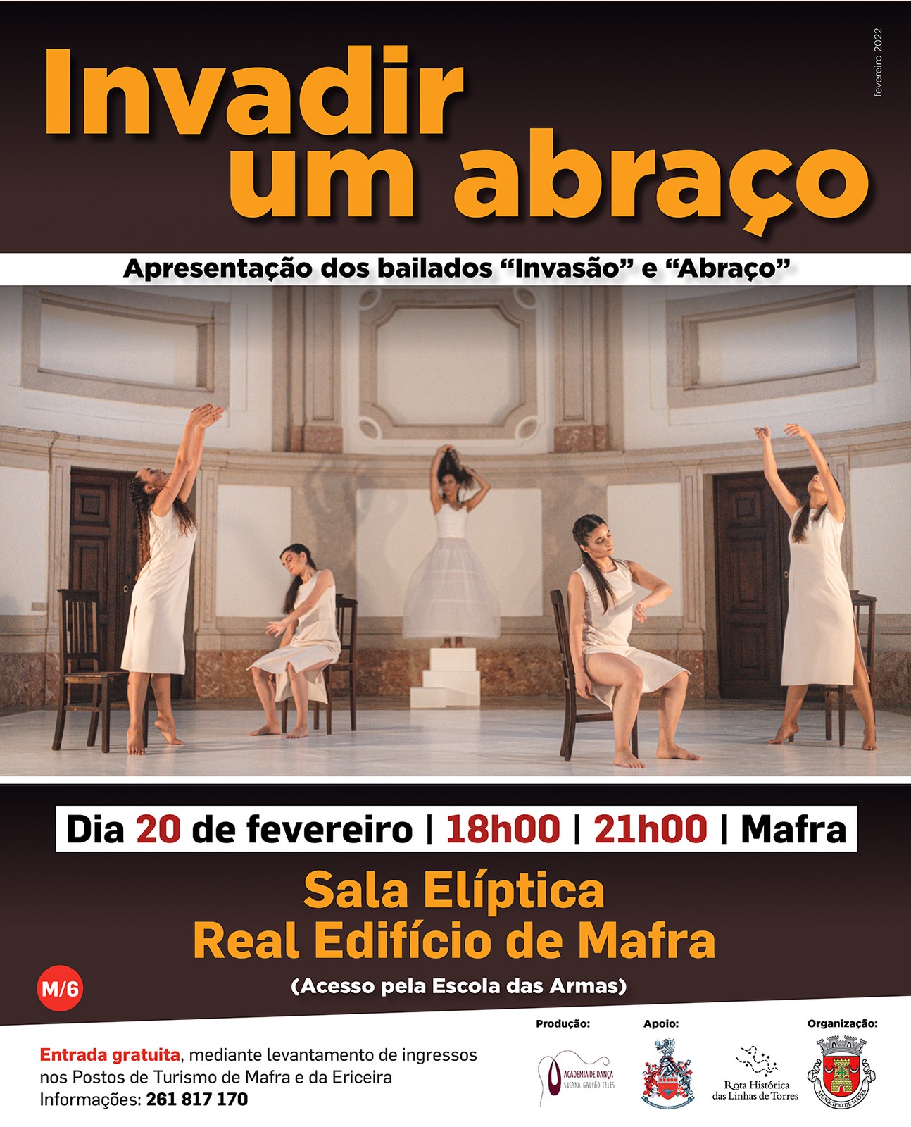 No âmbito da Rota Histórica das Linhas de Torres, o Município de Mafra, com o apoio da Escola das Armas, promove a realização de um espetáculo de bailado, no dia 20 de fevereiro, com sessões às 18h00 ou às 21h00, na Sala Elíptica do Real Edifício de Mafra. A entrada é gratuita, mediante levantamento de ingressos nos Postos de Turismo de Mafra e da Ericeira.