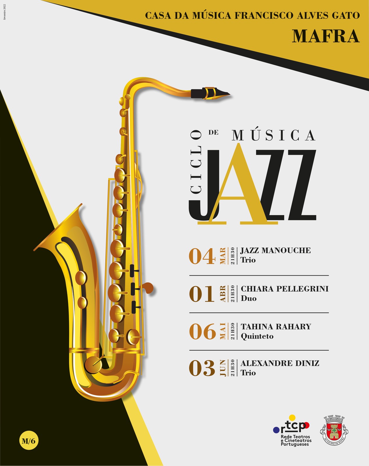 Das grandes canções do repertório clássico americano às novas abordagens do jazz, dando margem para a improvisação. De 4 de março a 3 de junho, em quatro concertos, esta é a viagem musical proposta pela Câmara Municipal de Mafra, através de uma nova edição do Ciclo de Música “Jazz”. Os espetáculos realizam-se na Casa da Música Francisco Alves Gato, em Mafra.