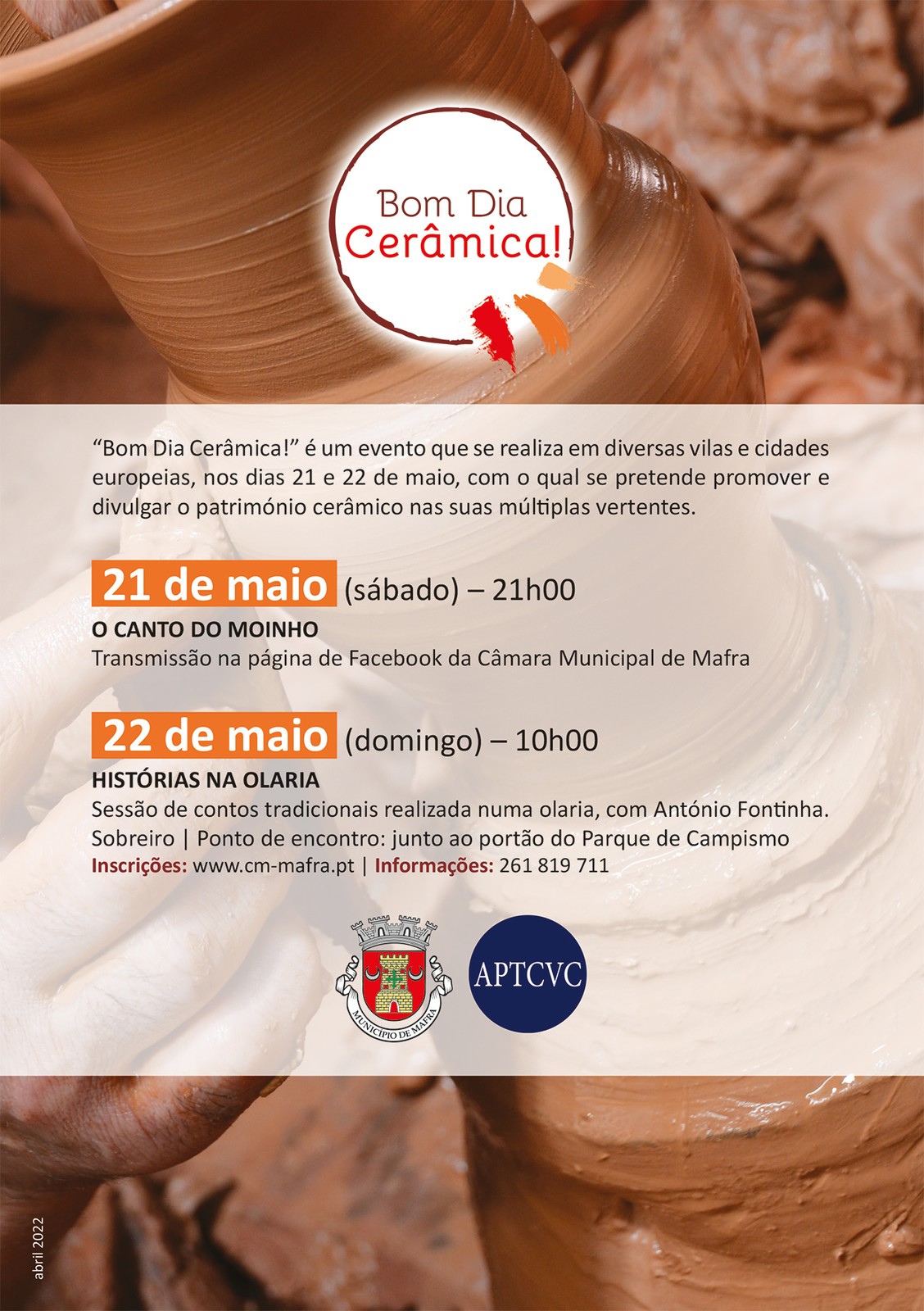 O Município de Mafra participa, nos dias 21 e 22 de maio, no evento “Bom Dia Cerâmica!”, um evento que se realiza em diversas vilas e cidades europeias em simultâneo, que pretende promover e divulgar o património cultural e histórico cerâmico nas suas múltiplas vertentes.