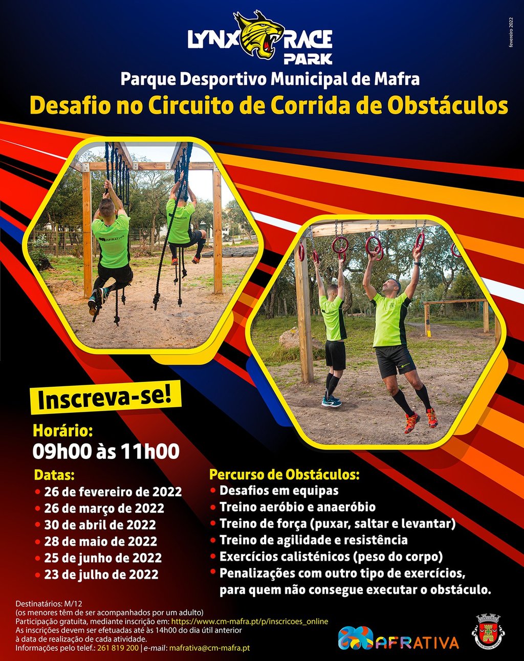 O Parque Desportivo Municipal de Mafra recebe, no próximo dia 28 de maio, entre as 09h00 e as 11h00, mais um desafio Lynx Race Park, uma atividade que pretende incentivar à prática desportiva ao ar livre, testando as capacidades e limites físicos dos atletas.