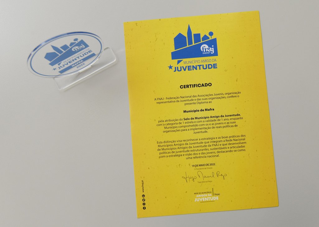 O Concelho de Mafra foi galardoado com o Selo de Município Amigo da Juventude, atribuído durante o II Encontro de Municípios Amigos da Juventude, que decorreu durante o dia de ontem, em Matosinhos.