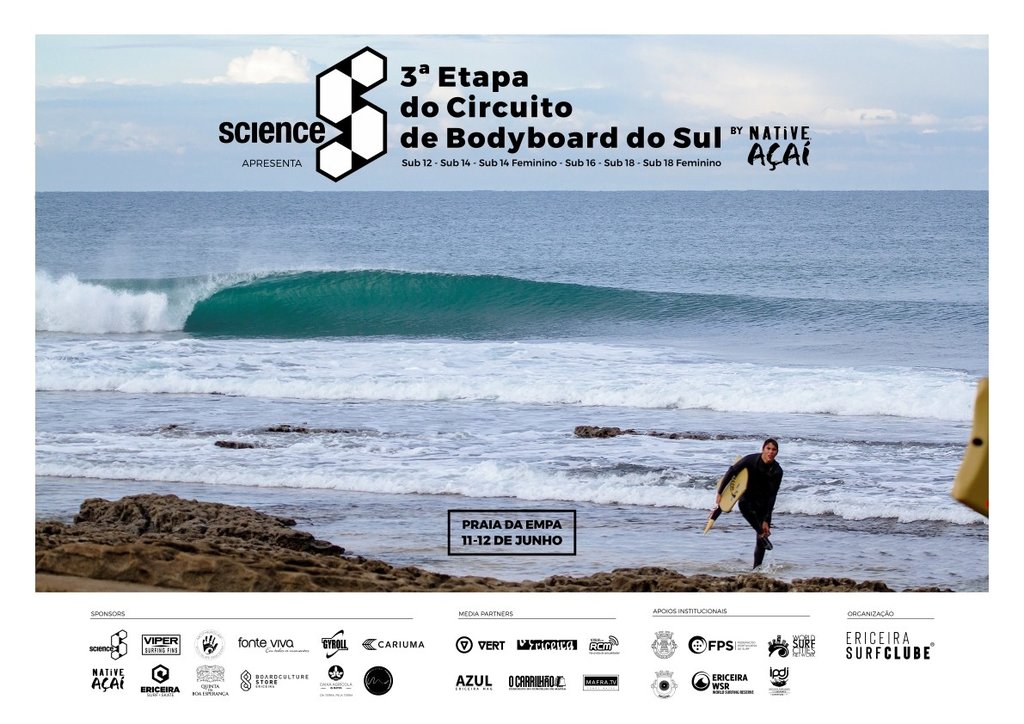 A emblemática Praia da Empa, na Ericeira, recebe a terceira e última etapa do Circuito de Bodyboard do Sul, nos próximos dias 11 e 12 de junho.