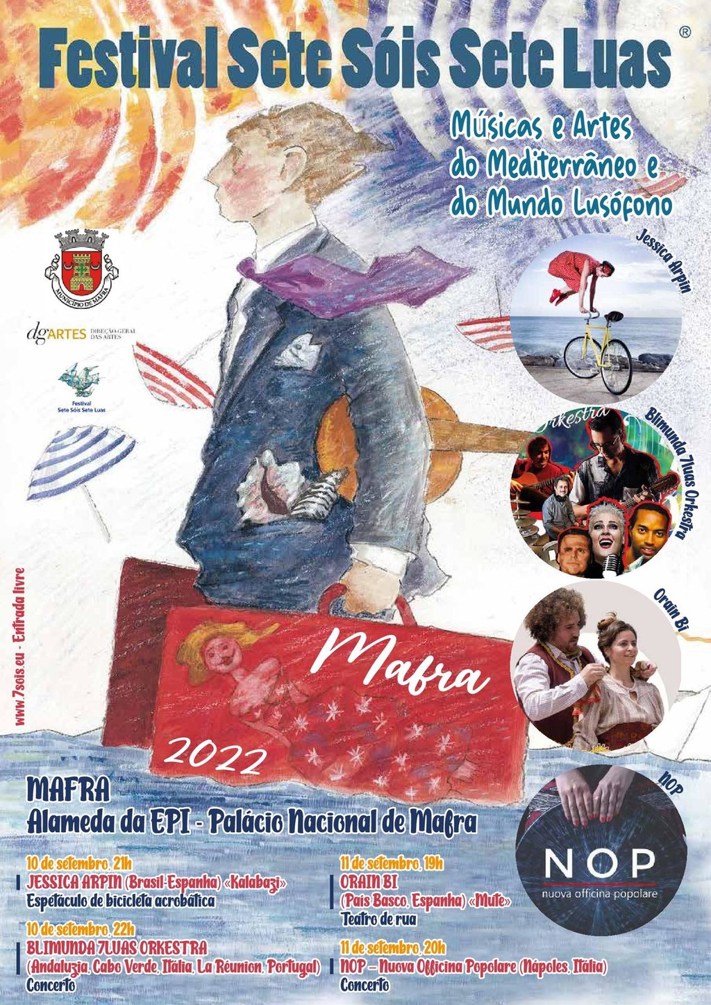 A música e a arte do Mediterrâneo e do Mundo Lusófono regressam à Alameda da EPI, em Mafra (lado sul do Palácio Nacional de Mafra), já no próximo fim de semana, dias 10 e 11 de setembro, para mais uma edição do Festival Sete Sóis Sete Luas.