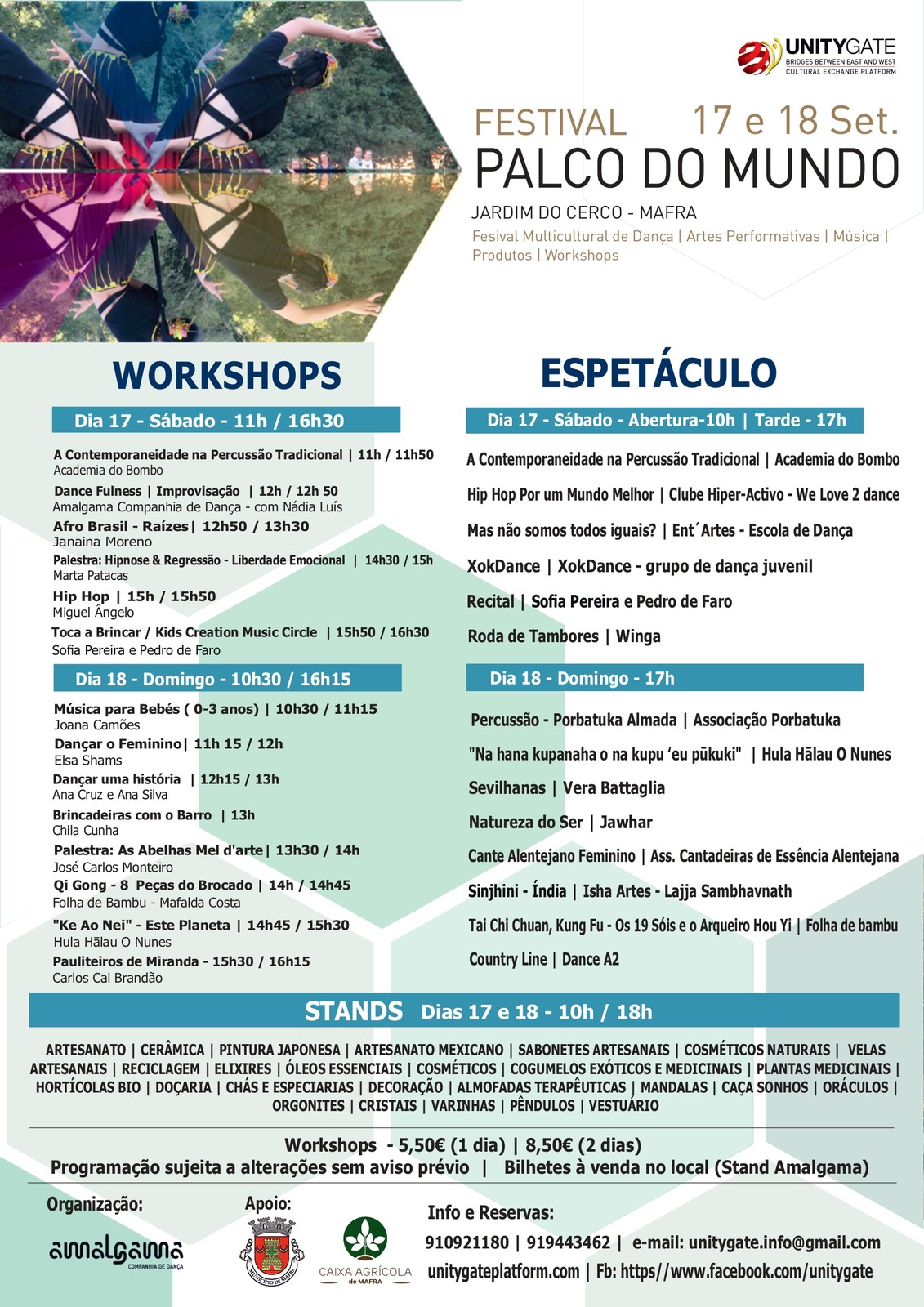Criado pela Amalgama – Companhia de Dança, com o apoio do Município de Mafra, o Festival integra espetáculos multiculturais, uma zona de venda de produtos naturais e sustentáveis, bem como workshops temáticos.