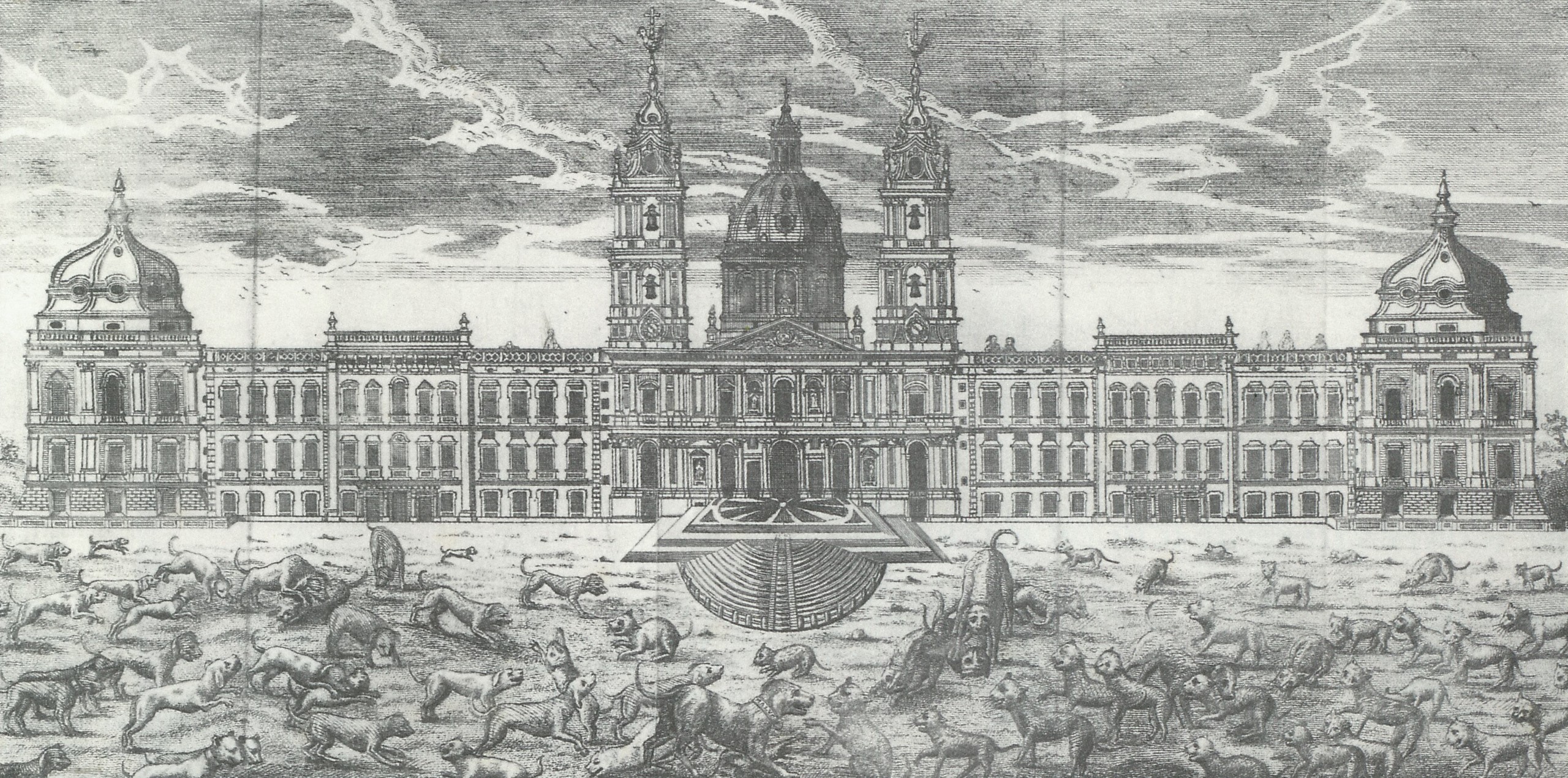Imagem: Gaticânea ou a Cruelissima Guerra entre os Cães e os Gatos [Real Vila de Mafra]. Gravura a buril e água forte, 1781.
