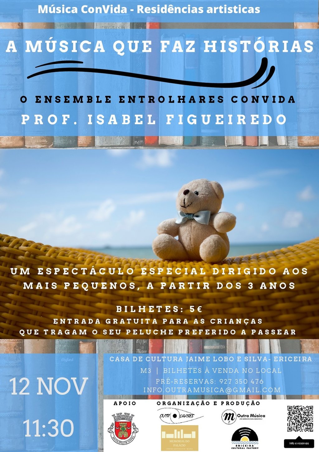 Esta iniciativa, dirigida aos mais pequenos, realiza-se no âmbito do programa “Música ConVida”, esta peça de teatro integra-se na residência artística concedida ao projeto “Outra Música”, composto por músicos no ativo residentes no concelho de Mafra, cuja atividade está sediada na Ericeira Business Factory.