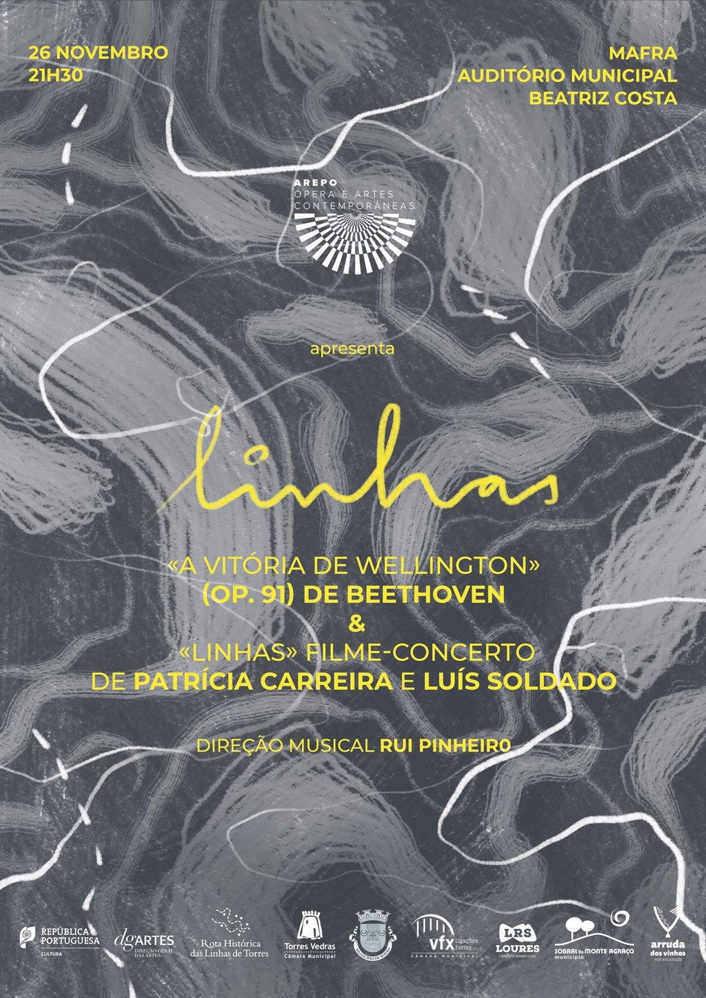 Criado pela AREPO – Ópera e Artes Contemporâneas, o espetáculo revisita algumas das imagens mais marcantes da história das Linhas de Torres, acompanhadas de uma interpretação da obra “A Vitória de Wellington”, de Ludwig van Beethoven, com arranjo de Luís Raimundo. A direção musical estará a cargo do maestro Rui Pinheiro.