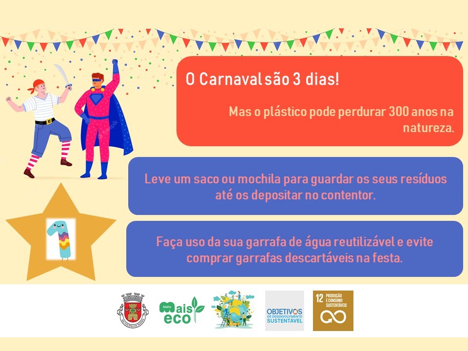 A Câmara Municipal sugere 12 ideias para tornar o seu Carnaval mais sustentável. Ao longo dos próximos dias, serão partilhadas algumas dicas para personalizar a sua festa, contribuindo para um ambiente mais limpo. Fique a conhecer as primeiras quatro.