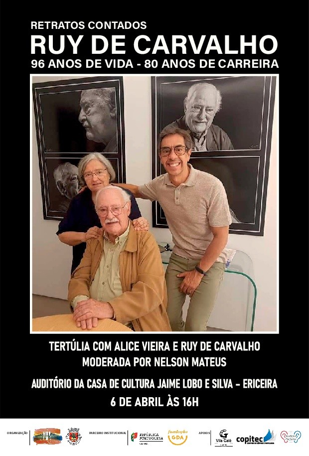 Após a visita, terá lugar a tertúlia “Envelhecer no Ativo”, às 16h00, onde Ruy de Carvalho irá conversar com o público sobre as suas oito décadas de carreira, com a presença da escritora Alice Vieira, no Auditório da referida Casa de Cultura.