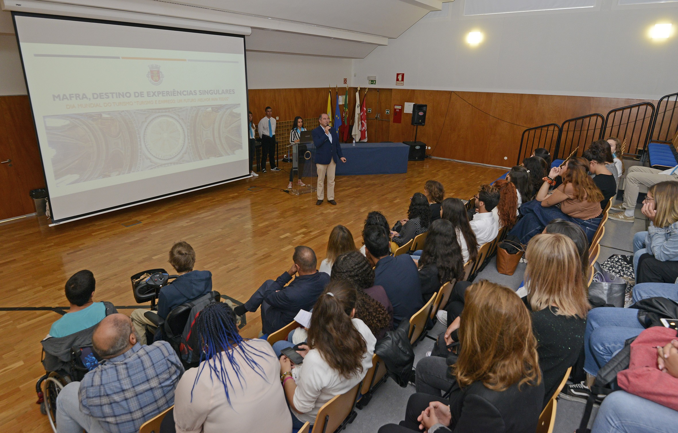 “Mafra, destino de experiências singulares”. No Dia Mundial do Turismo, este foi o mote da intervenção do Presidente da Câmara Municipal de Mafra, em ambiente de partilha com os alunos dos Cursos Profissionais de Turismo e de Restaurante e Bar da Escola Secundária José Saramago, futuros protagonistas da dinâmica turística do Concelho de Mafra.