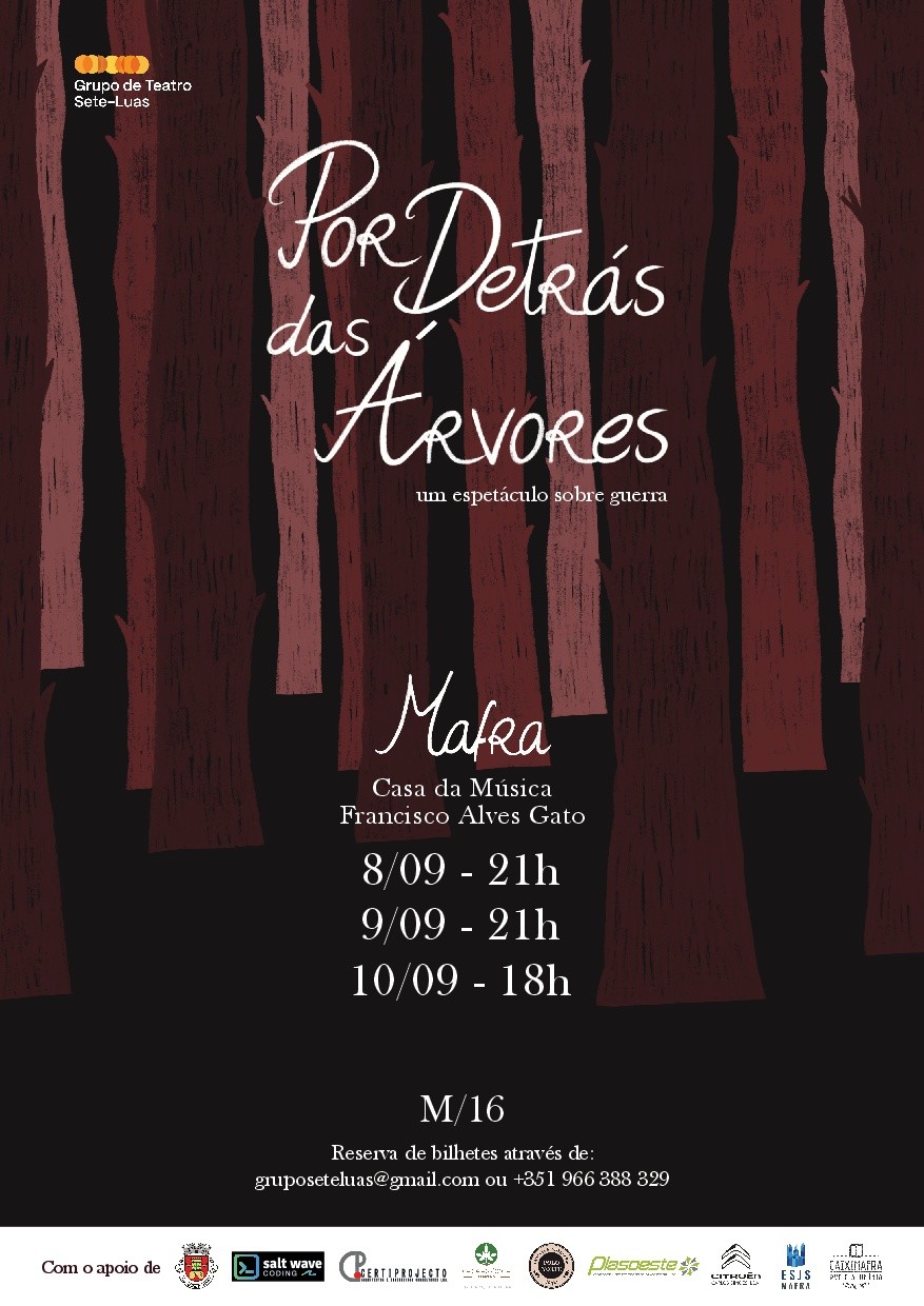 “Por Detrás das Árvores” é o tema da peça de teatro que vai a cena na Casa da Música Francisco Alves Gato, em Mafra, nos dias 8 e 9 de setembro, às 21h00, e no dia 10, às 18h00. Este, que será um espetáculo sobre guerra, para maiores de 16 anos, é interpretado por um grupo de antigos alunos da Escola Secundária José Saramago.