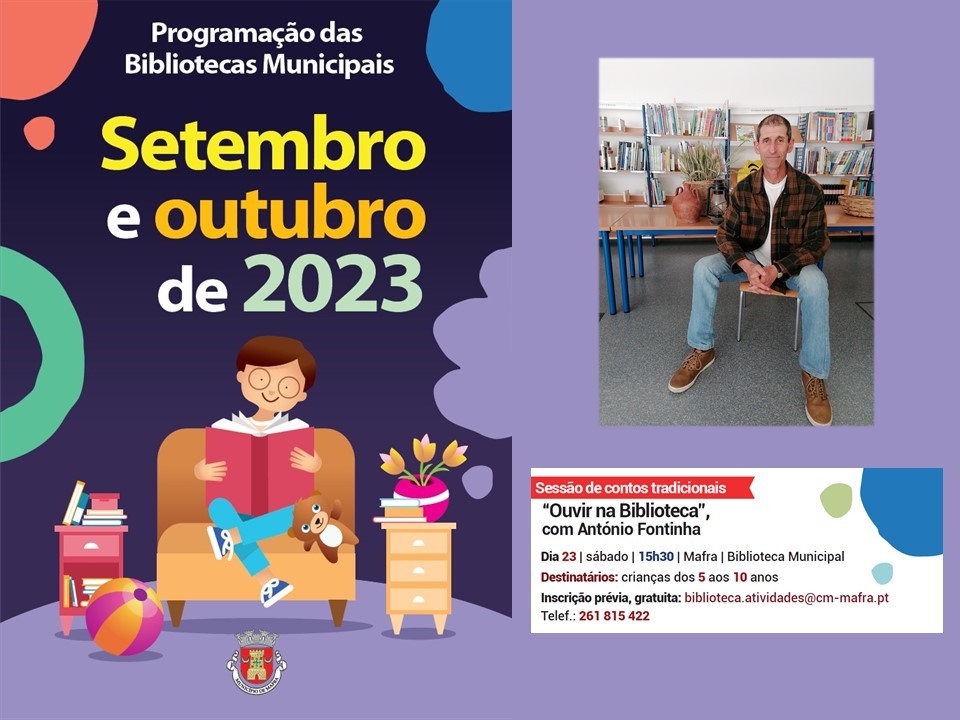 O conhecido contador de histórias António Fontinha apresenta mais uma sessão especial com as melhores narrativas tradicionais portuguesas. “Ouvir na Biblioteca” regressa à Biblioteca Municipal de Mafra, no dia 23 de setembro, às 15h30.