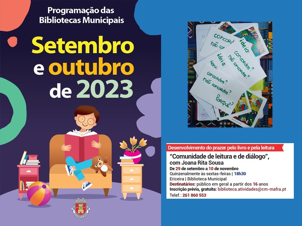 “Comunidade de leitura e de diálogo” é a oficina que promete incentivar à leitura e ao pensamento crítico, orientada por Joana Rita Sousa. As sessões realizam-se quinzenalmente às sextas-feiras, de 29 de setembro a 10 de novembro, às 18h30, na Biblioteca Municipal da Ericeira.