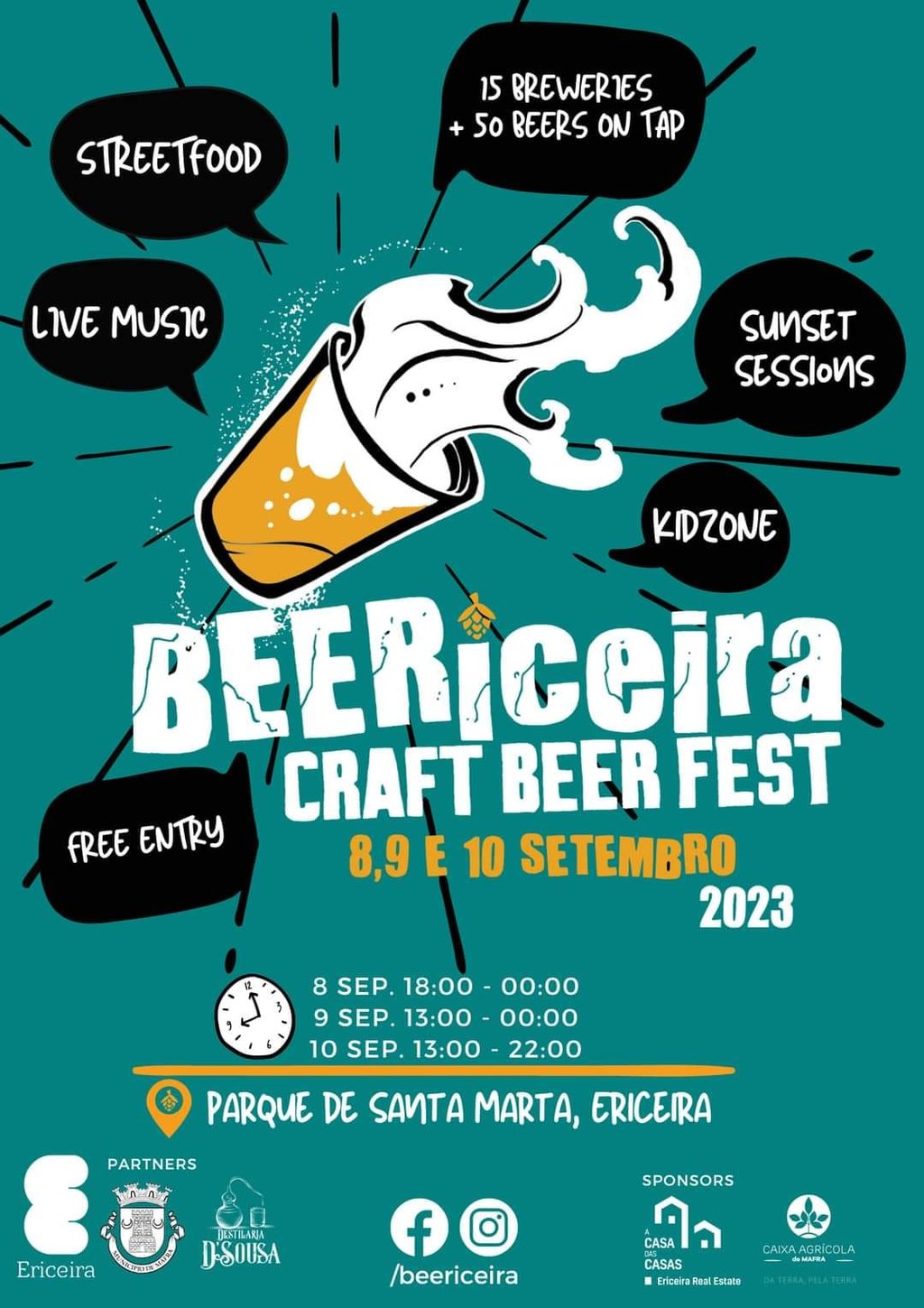 O BEERiceira – Craft Beer Fest, o primeiro festival de cerveja artesanal junto ao mar, estará a decorrer nos dias 8, 9 e 10 de setembro, no Parque de Santa Marta (Ericeira), com o apoio do Município de Mafra.