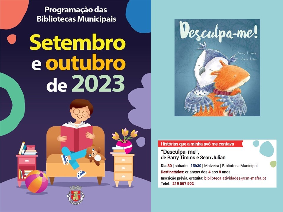 “Desculpa-me”, de Barry Timms e Sean Julian, é a história que as crianças dos 4 aos 8 anos vão poder escutar na próxima Hora do Conto, que se realiza no dia 30 de setembro, às 15h30, na Biblioteca Municipal da Malveira.