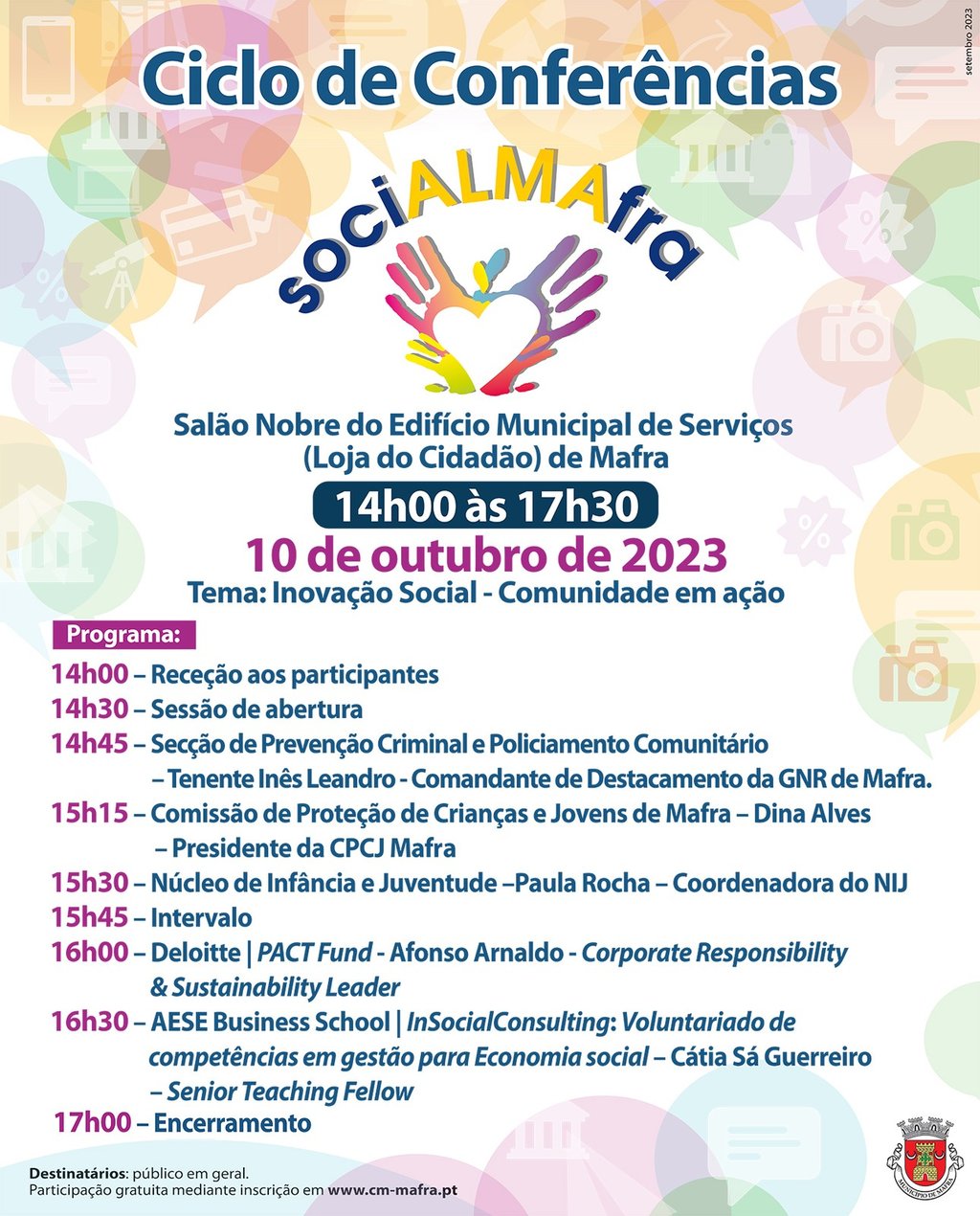 O encontro “Inovação Social – Comunidade em Ação” terá a presença de representantes da Secção de Prevenção Criminal e Policiamento Comunitário da GNR de Mafra, da Comissão de Proteção de Crianças e Jovens de Mafra, do Núcleo de Infância e Juventude, da Deloitte e da AESE Business School.