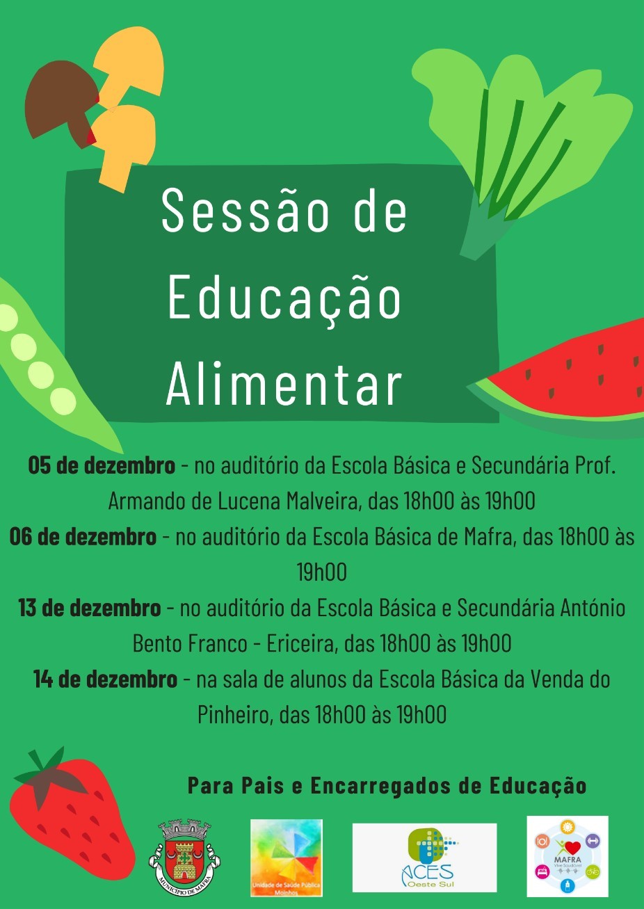 Incentivando a alimentação saudável de crianças e jovens, a Câmara Municipal dinamiza sessões de educação alimentar, destinadas a pais e encarregados de educação. A primeira sessão realiza-se já amanhã, dia 5 de dezembro, no Auditório da Escola Básica e Secundária Prof. Armando de Lucena – Malveira.