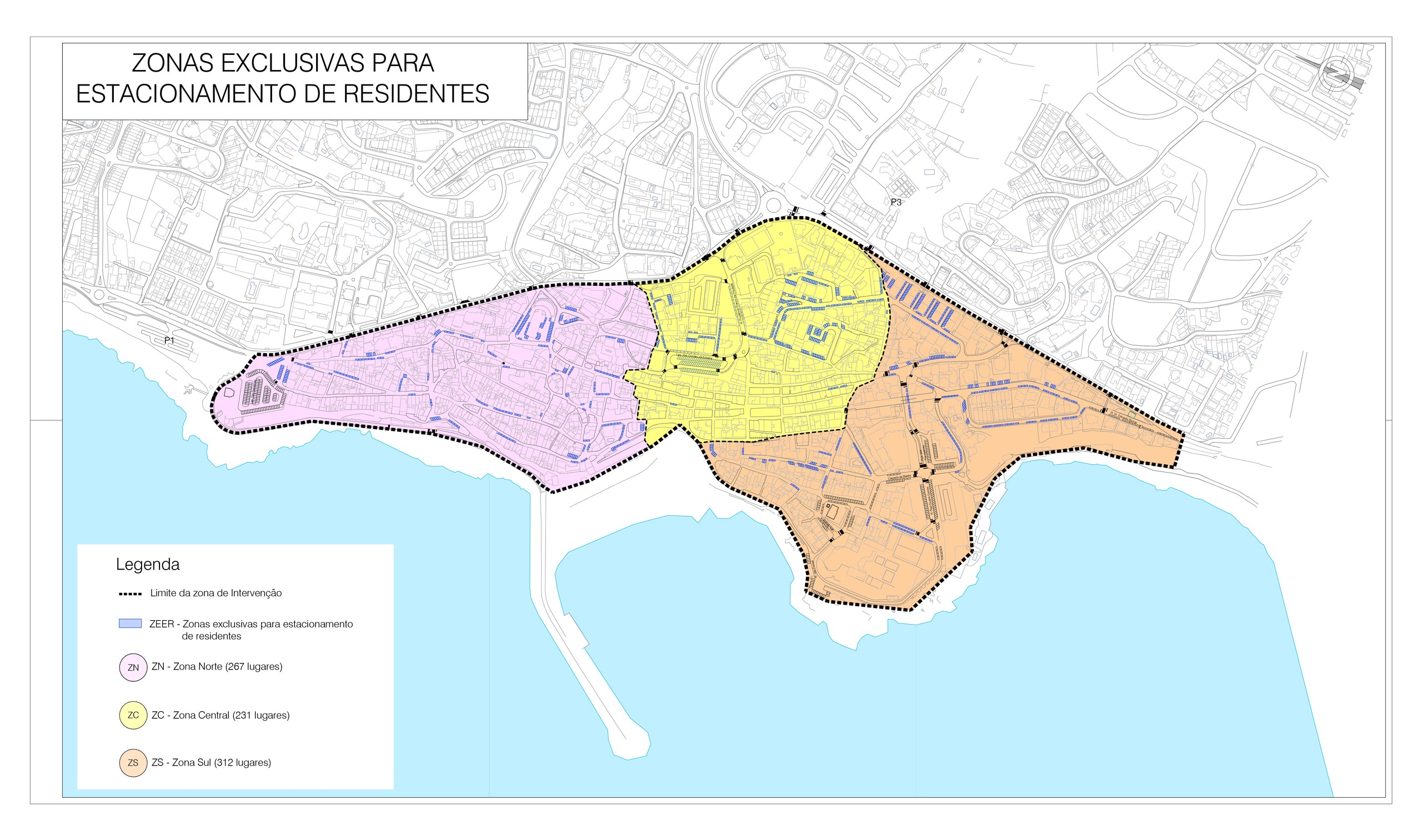 - Zonas exclusivas para estacionamento de residentes