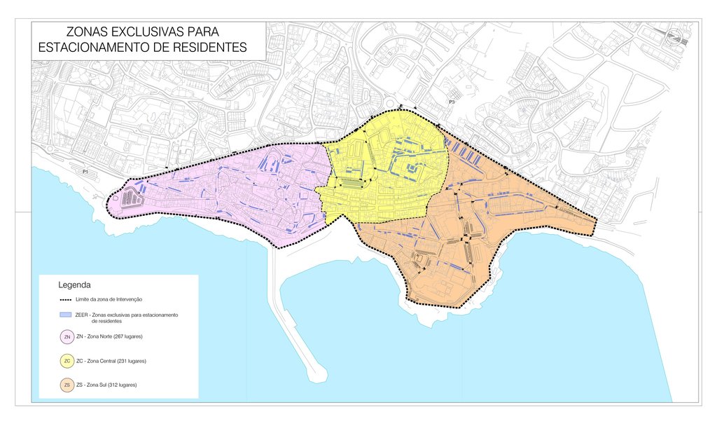 - Criação de zonas de estacionamento exclusivas a residentes – ZEER (num total de 810 lugares), mediante a atribuição de um cartão de residente por cada fogo habitacional, o qual confere ao titular a faculdade de parquear, num único lugar de estacionamento, até duas viaturas, em alternância, nos espaços definidos da sua zona de residência ou nos espaços da zona imediatamente adjacente. Têm direito a este cartão as pessoas singulares que residam em fogos situados dentro de uma ZEER, desde que se trate de habitação correspondente ao local de residência habitual e permanente do interessado e a que corresponda o seu domicílio fiscal e desde que o bem imóvel não disponha de lugar de estacionamento, garagem, logradouro ou similar;