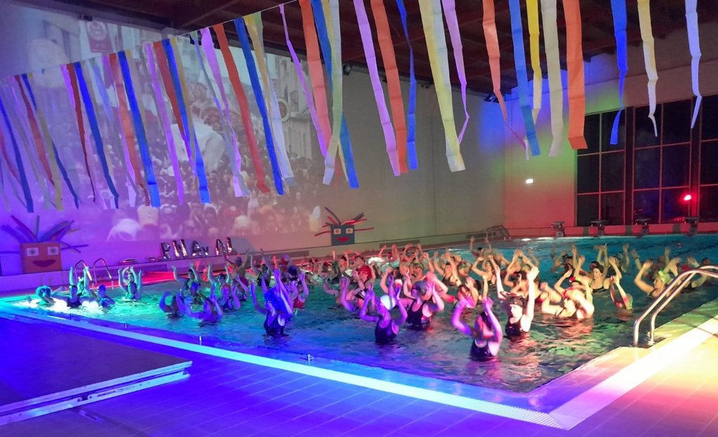 100 munícipes participaram na mais recente Mega Hidro, que se realizou nas Piscinas Municipais da Encarnação. “Assalto ao Carnaval” foi o tema desta aula de hidroginástica, especialmente dedicada às músicas do ritmo carnavalesco.