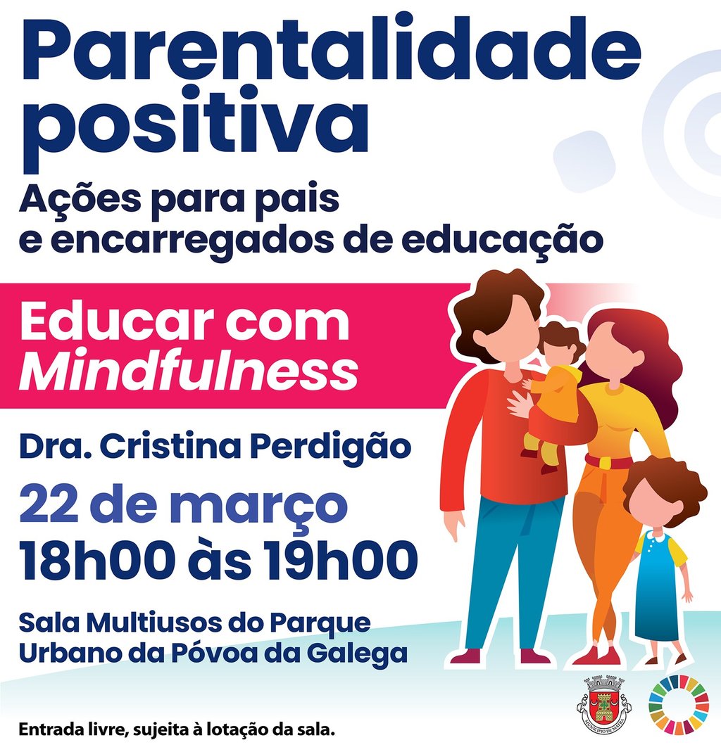 “Educar com Mindfulness” é o tema da próxima ação sobre “Parentalidade positiva”. Não perca a sessão, que se realiza na sexta-feira, dia 22 de março, a partir das 18h00, na Sala Multiusos do Parque Urbano da Póvoa da Galega.