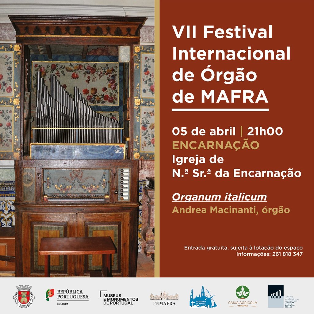 A música de órgão vai começar a tocar no Concelho de Mafra! O Festival Internacional de Órgão de Mafra tem hoje o seu concerto de abertura, às 21h00, na Igreja de N.ª Sr.ª da Encarnação. Não perca este concerto, que tem como tema “Organum italicum”, protagonizado pelo organista italiano Andrea Macinanti.