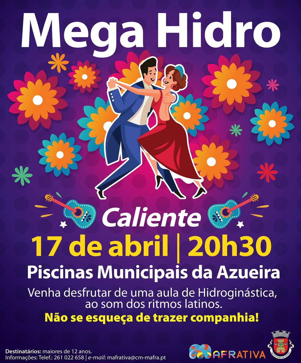 Venha desfrutar, gratuitamente, de uma aula de hidroginástica, ao som de algumas das melhores músicas do ritmo latino. A Mega Hidro “Caliente” realiza-se no dia 17 de abril, às 20h30, nas Piscinas Municipais da Azueira.