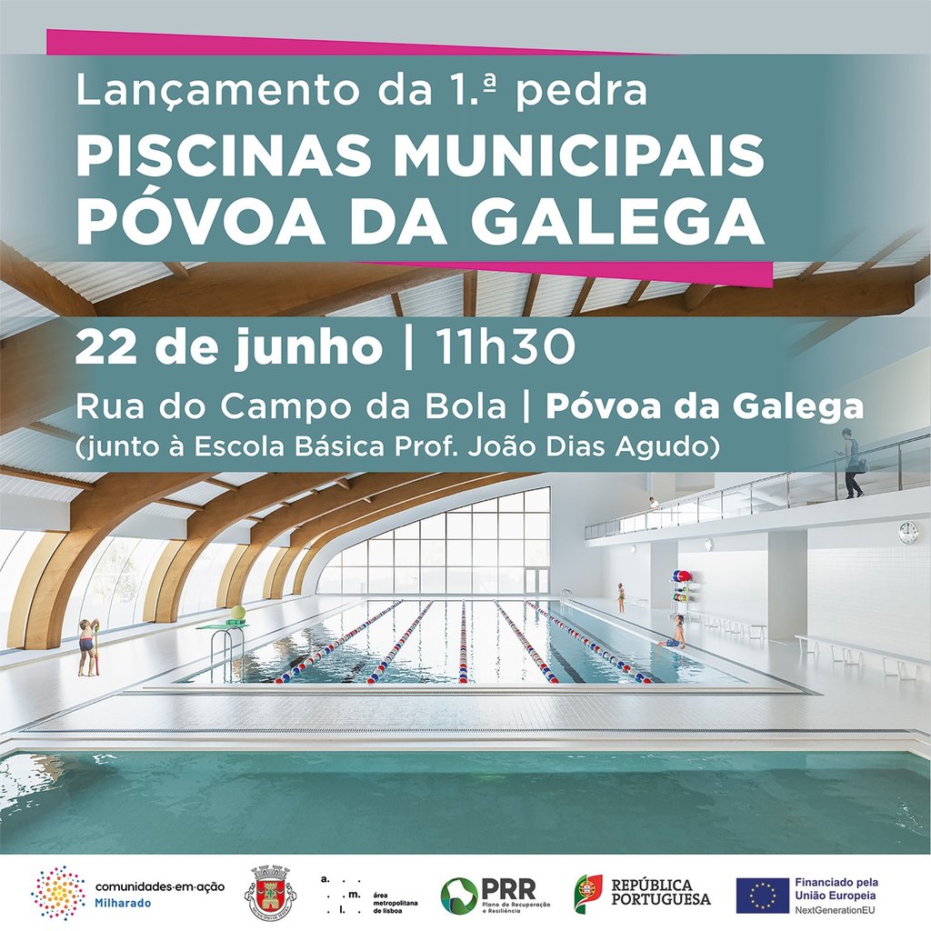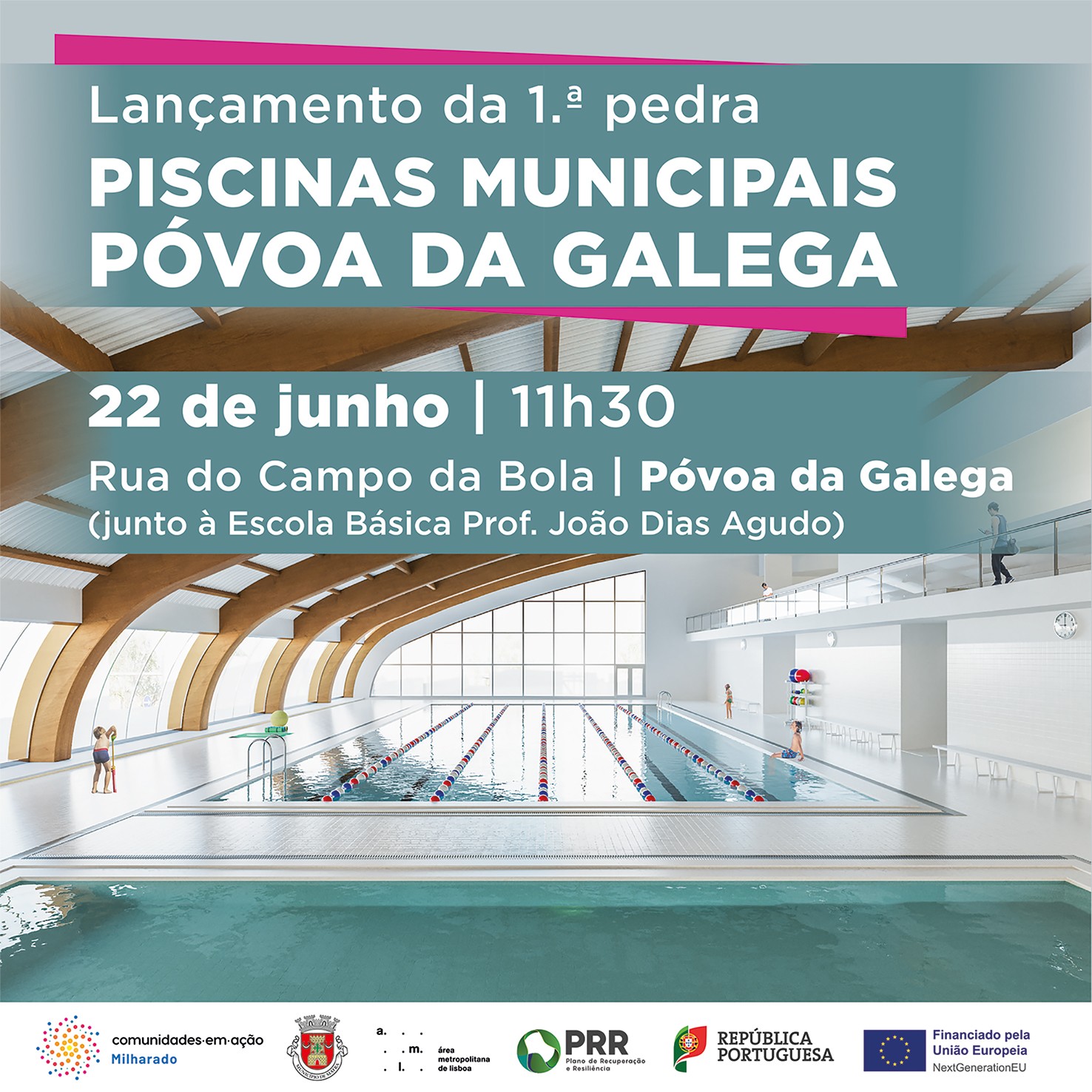A Câmara Municipal de Mafra assinala o lançamento da primeira pedra das Piscinas Municipais da Póvoa da Galega, no próximo dia 22 de junho (sábado), às 11h30, na Rua do Campo da Bola, junto à Escola Básica Prof. João Dias Agudo, na Póvoa da Galega.