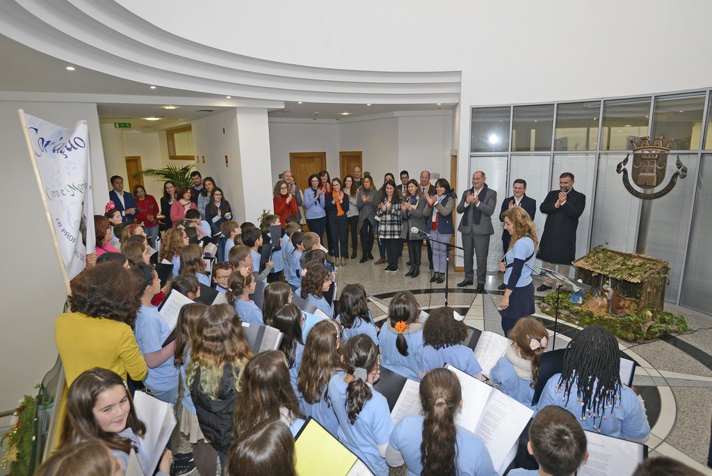 O Coro Infantil da Escola Básica Prof. João Dias Agudo, da Póvoa da Galega, apresentou votos de Boas Festas entoando alguns temas alusivos à quadra natalícia, no Edifício dos Paços do Concelho, em Mafra. Na ocasião, o Presidente da Câmara Municipal anunciou que, em 2020, a novidade na Póvoa da Galega é a construção de um Parque Verde, desafiando os alunos a criar a imagem do “Guardião do Parque”.