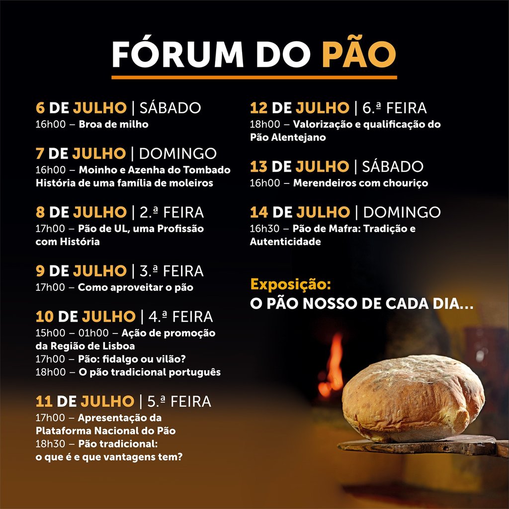 Nesta 12.ª edição, o Festival do Pão conta com a presença de produtores e panificadores de outras regiões do país. Visite o Fórum do Pão e descubra os saberes e tradições locais, regionais e nacionais. Hoje, às 17h00, não perca a atividade “Pão de UL, uma Profissão com História”, com Maria de Lurdes Resende, Presidente da APPUL – Associação de Produtores de Pão de UL, em representação do Município de Oliveira de Azeméis.