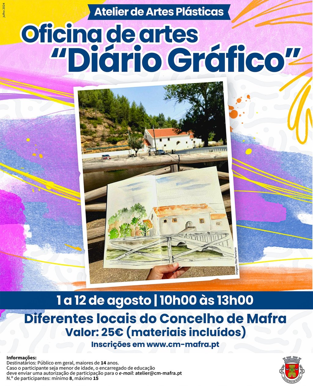 Está de volta a oficina de artes “Diário Gráfico” com sessões de desenho em vários locais do Concelho de Mafra. Esta é uma atividade dedicada ao desenho em diário gráfico, realizada no âmbito do Atelier de Artes Plásticas, que decorre entre os dias 1 e 12 de agosto, das 10h00 às 13h00.